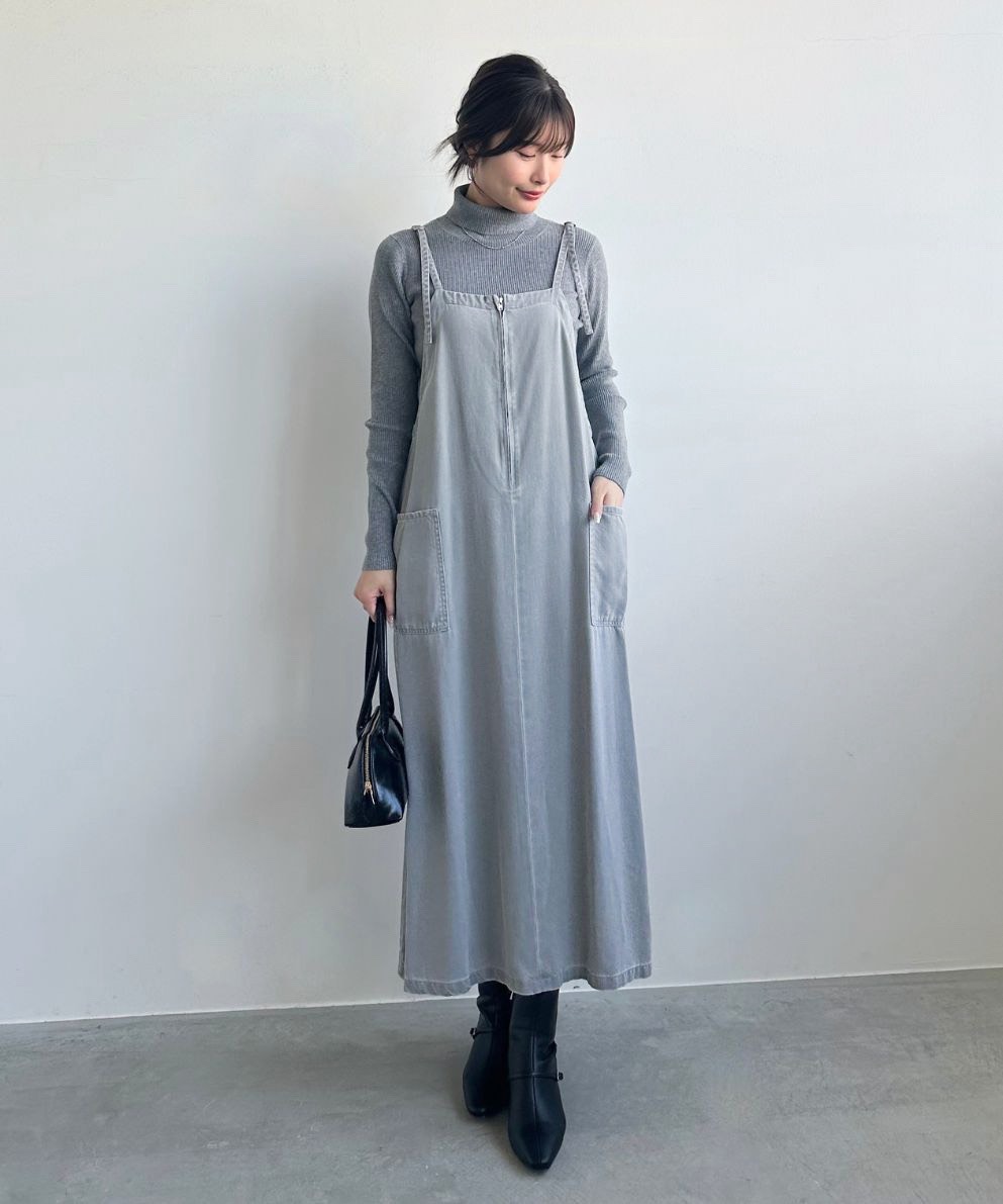 【サイズ感】:36サイズのアジャスターを1番短くしてギリギリの丈。身幅はゆったりして身体のラインは全く出ません。脇周りにゆとりがあるのでアジャスターを1番短くしても窮屈に感じないのが小柄さんにも嬉しいポイントです。