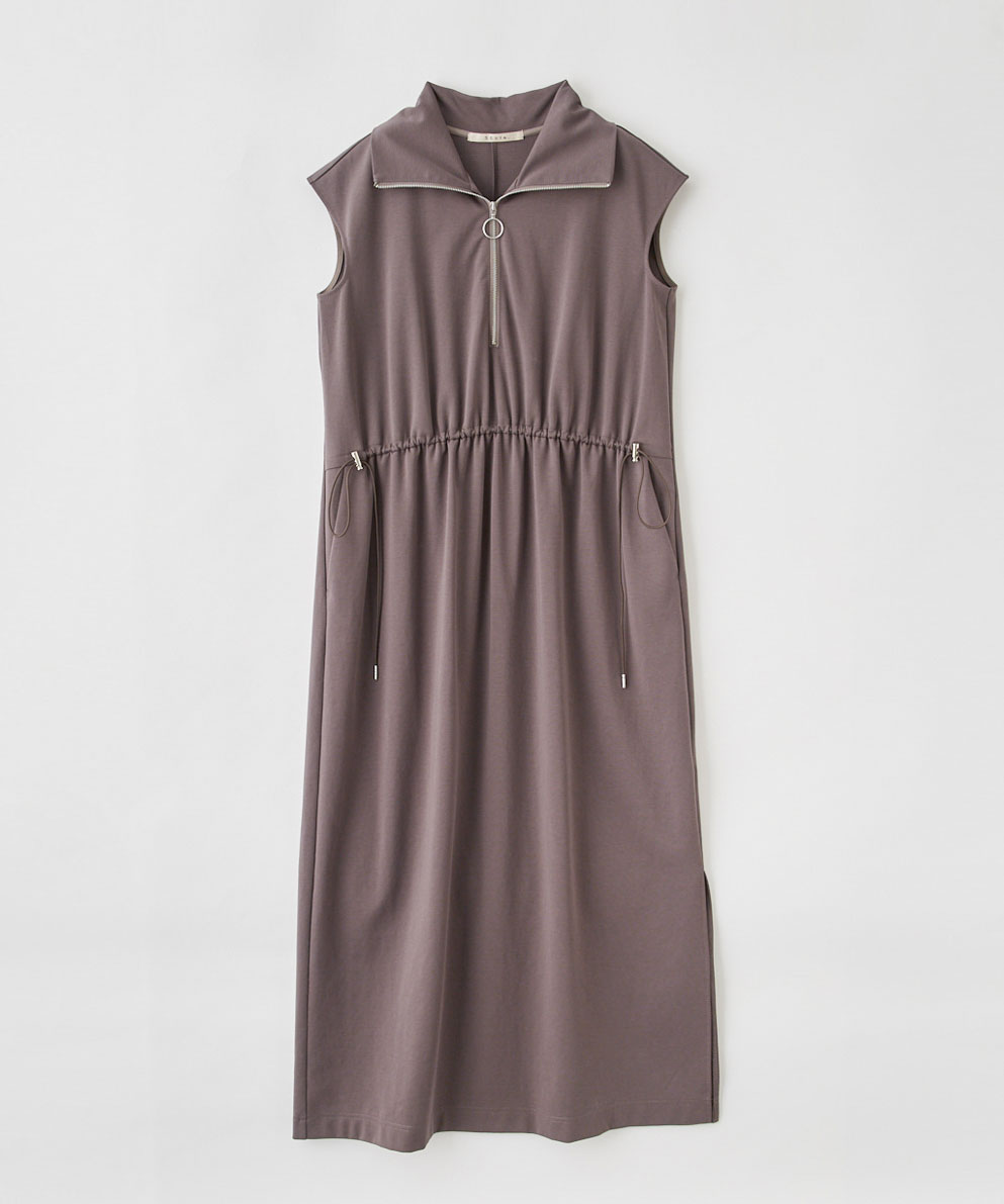 【着用感】:締め付け感がなく楽ちん。衿元のジップやウエストの絞りで骨格問わずきれいに着られる。