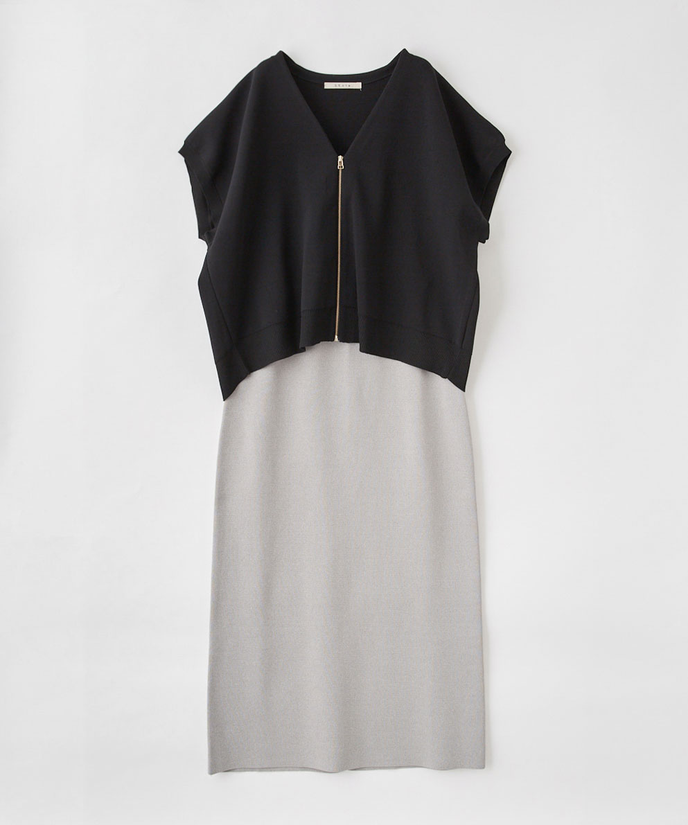 ・トップスは、羽織るだけで着映えるアイテムで、トレンド感のあるブルゾン風のZIPニットジレ。