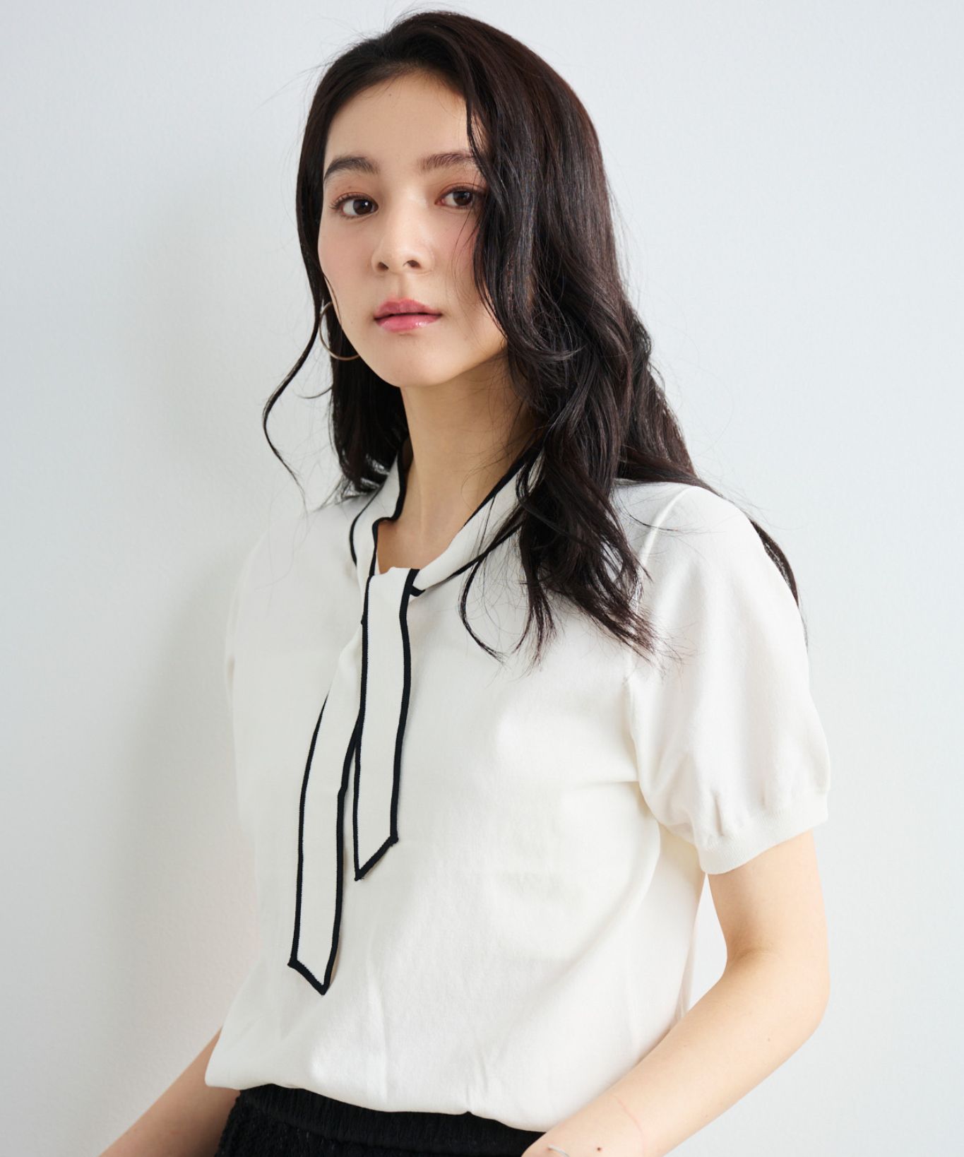 4. ボウタイ半袖ニットプルオーバー(オンライン限定カラー有り)