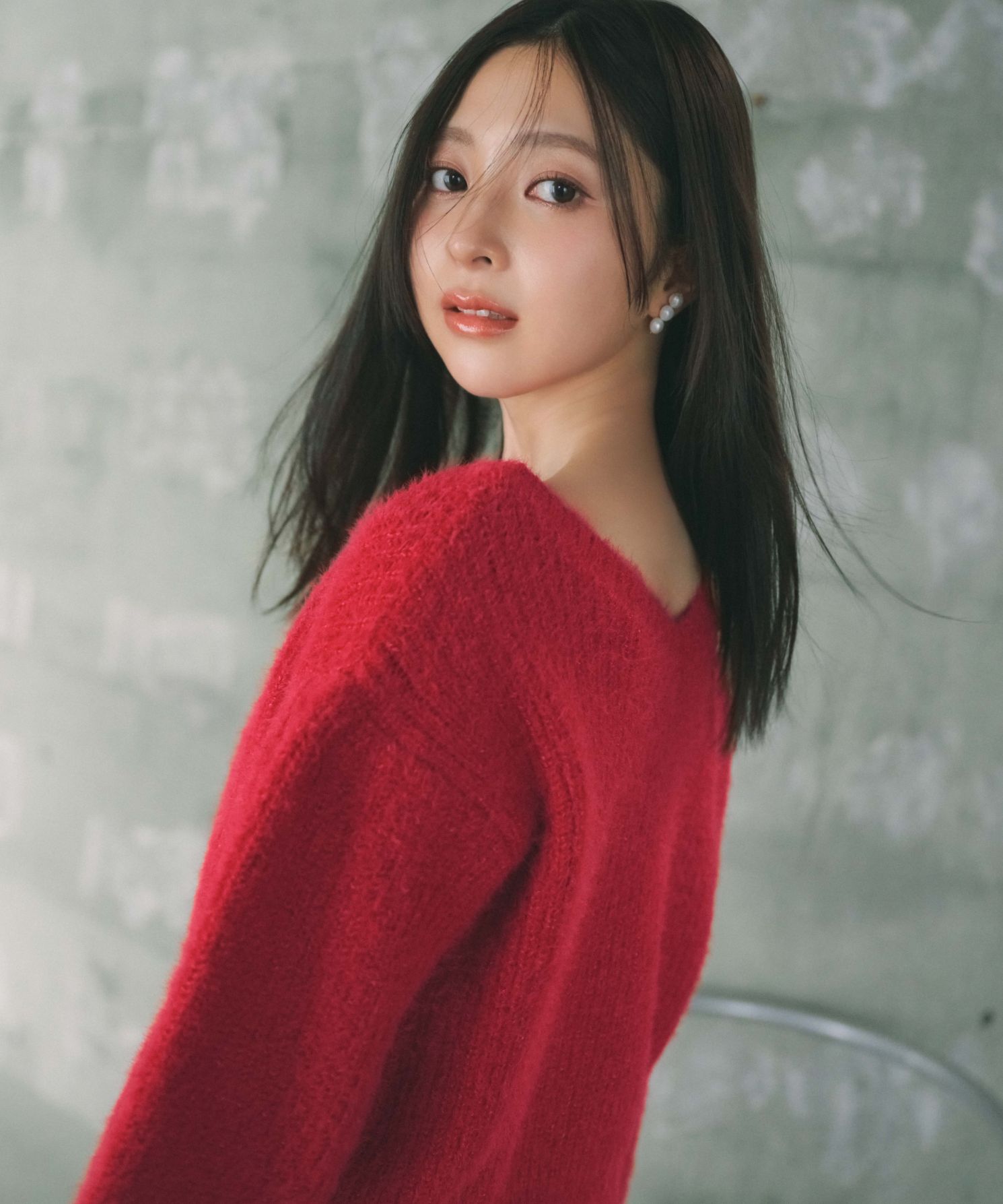 【素材感】:薄手で少しハリ感のあるニット素材。