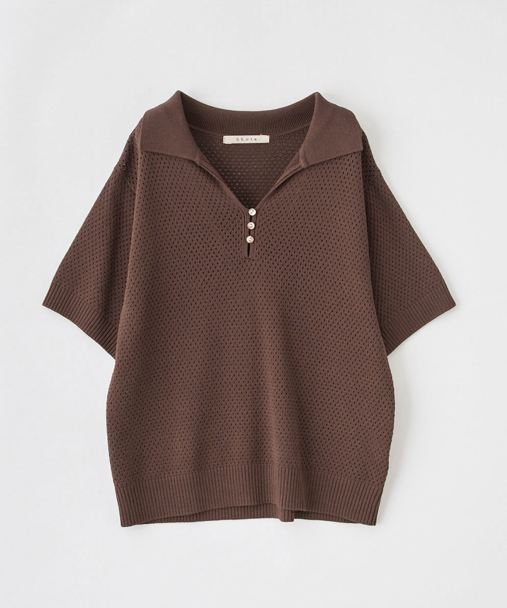 【着用感】:穴が小さめのメッシュ素材なので透けはあまり気になりません。インナーは白ほか明るい色であればそれほど気にせず着られると思います。リアルバイしましたが、とても軽く、また肌触りが良く快適に着られます。首周りが開き過ぎず適度に抜け感のある開き具合です。