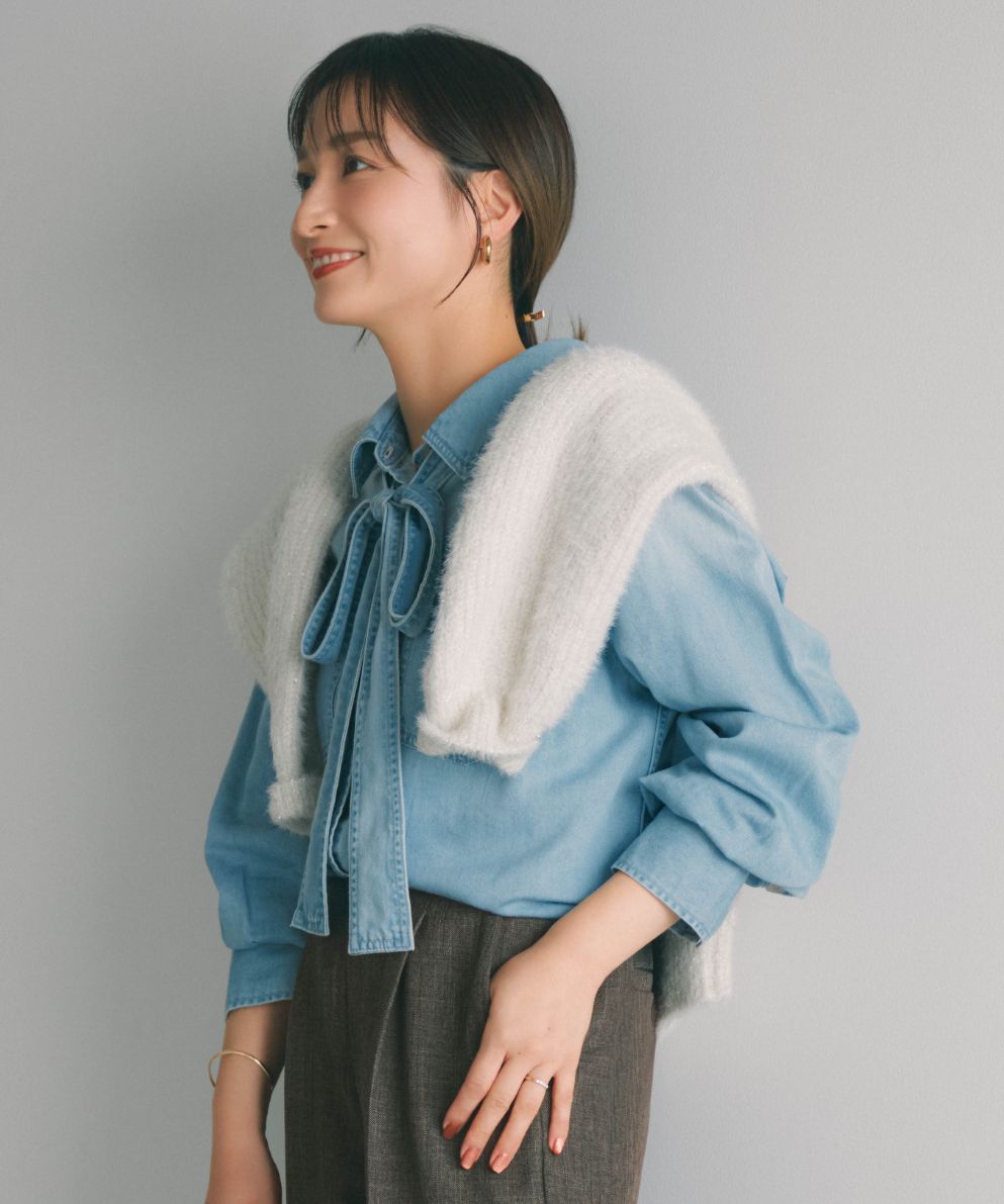 【 おすすめスタイリング 】:ニットとのレイヤードでボウタイをカジュアルに着こなすスタイリング -