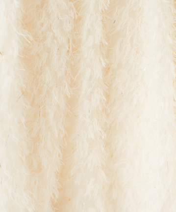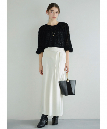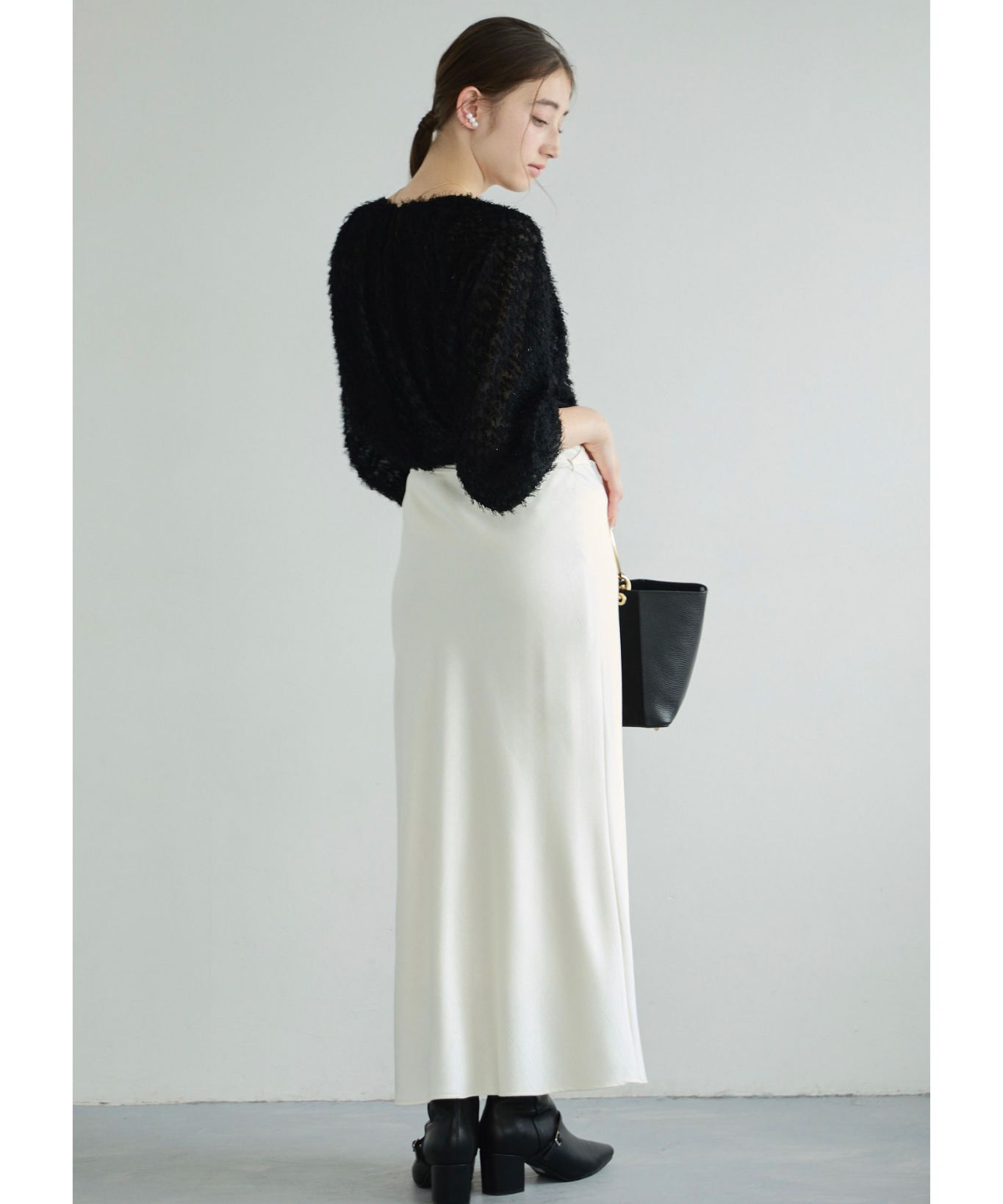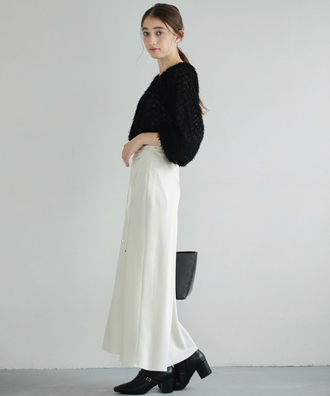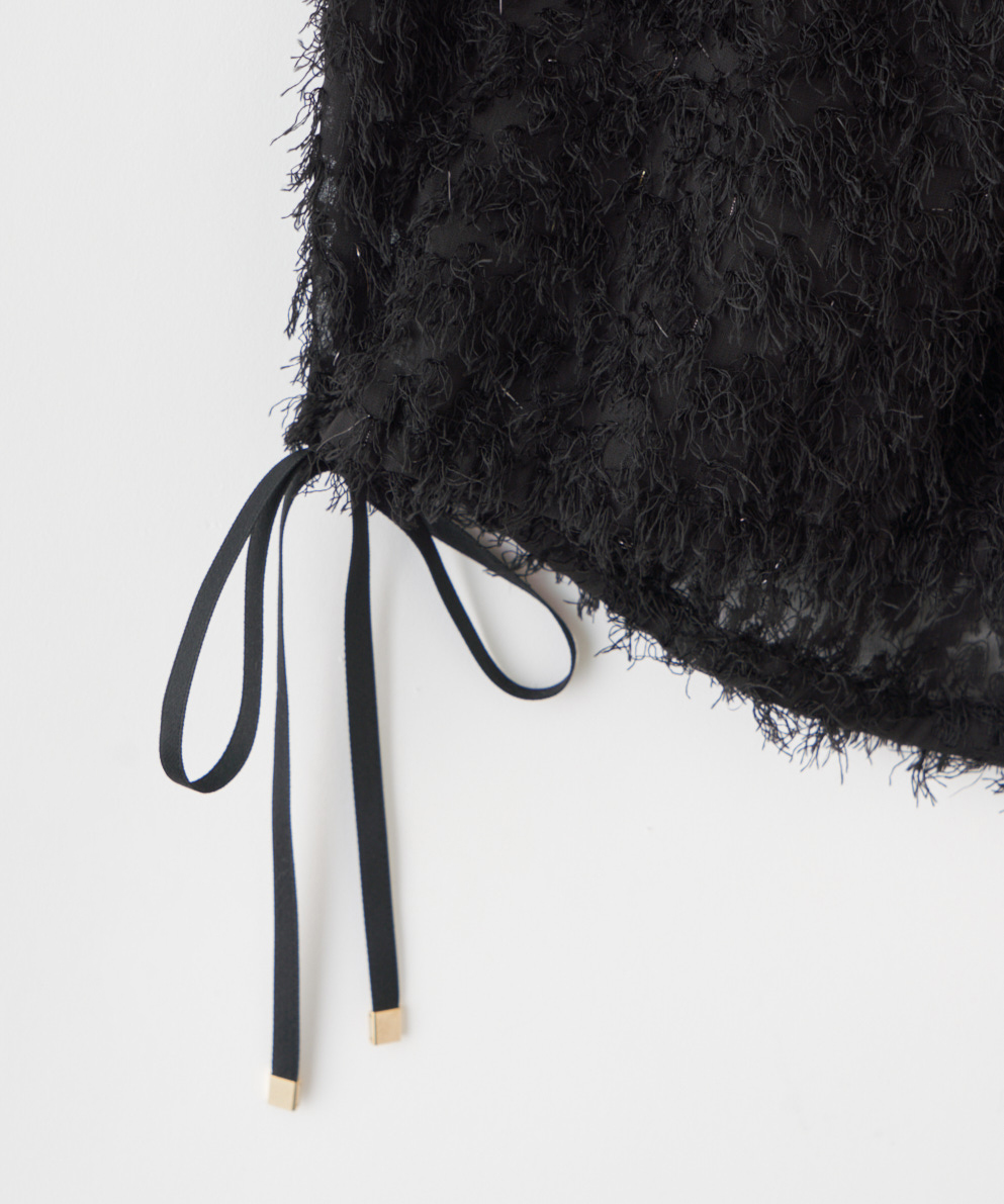 ・ラメ糸の光沢が映える毛足長めのカットジャカードで、1枚で華やかに決まる主役素材です。