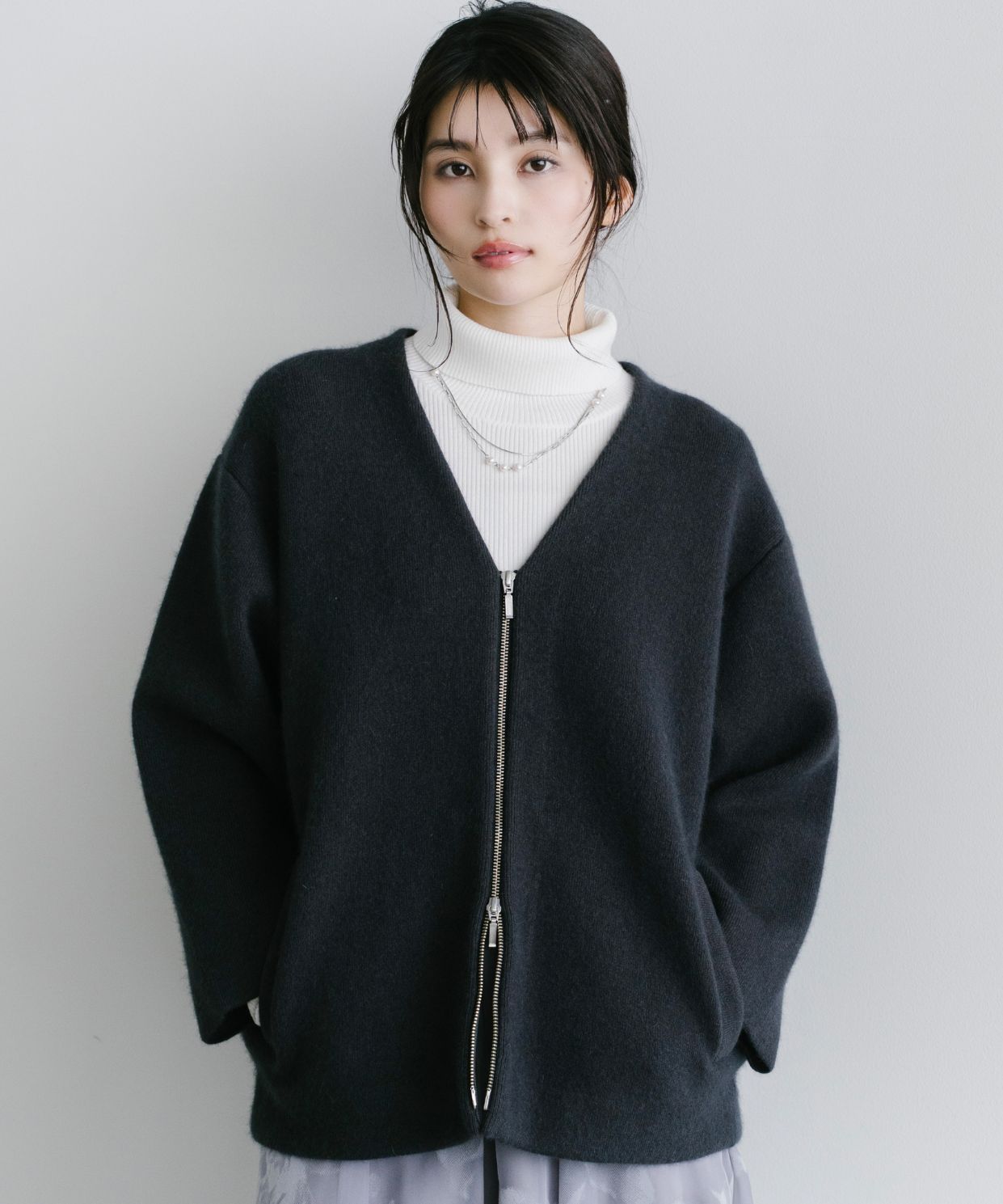【おすすめスタイリング】:短め丈なのでワンピースやスカートに羽織るのがおすすめです!