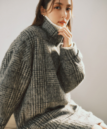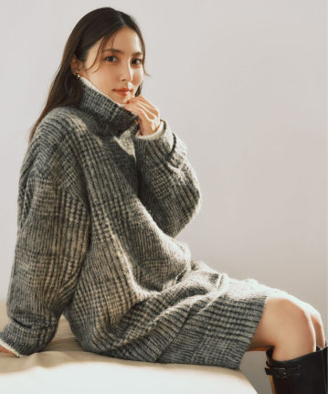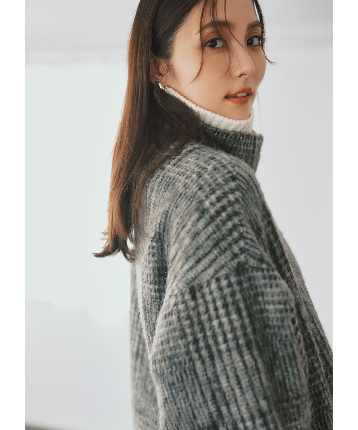 ・後袖ぐりにゆとりを多めに入れてコロッとしたボリュームのあるシルエットを作っています。袖はゆったりしているので厚手のニットを中に着てもかさばらないのも嬉しいポイントです。