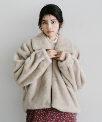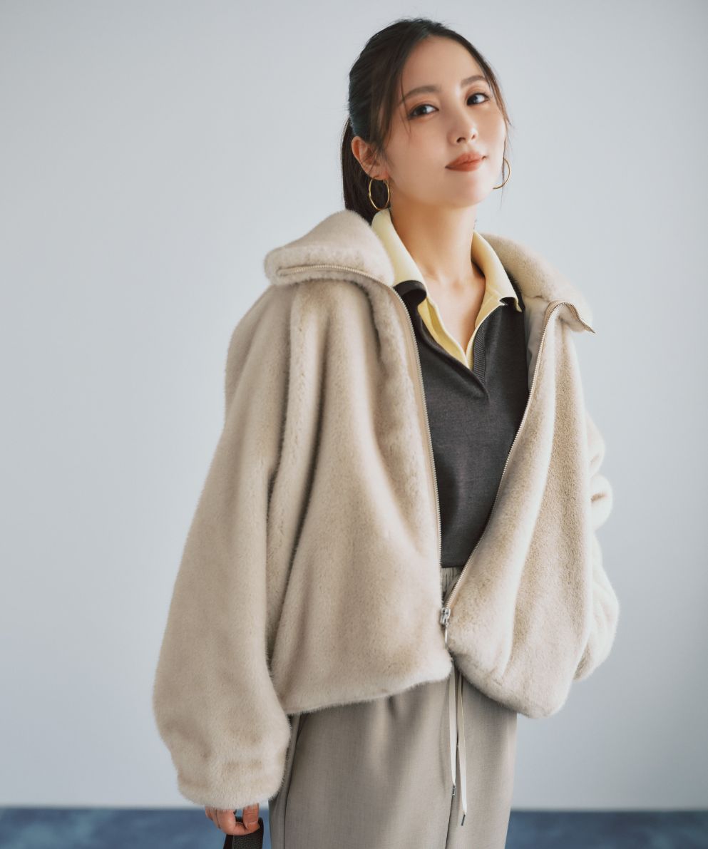 【素材感】:フェイクファー素材。毛の密度が高く高級感があります。