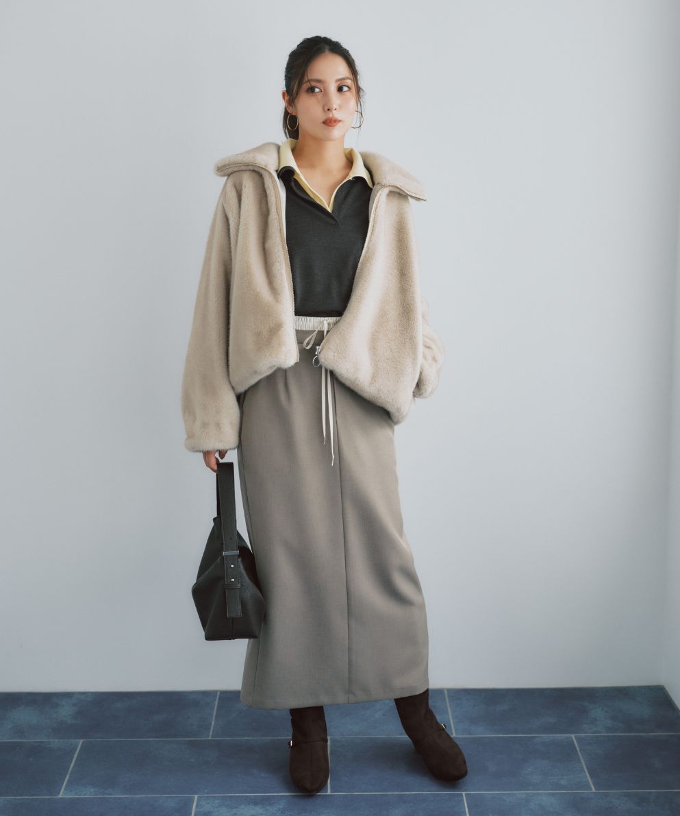 【おすすめスタイリング】:着丈がやや短めなので、ワイドパンツやスカート合わせがおすすめです!