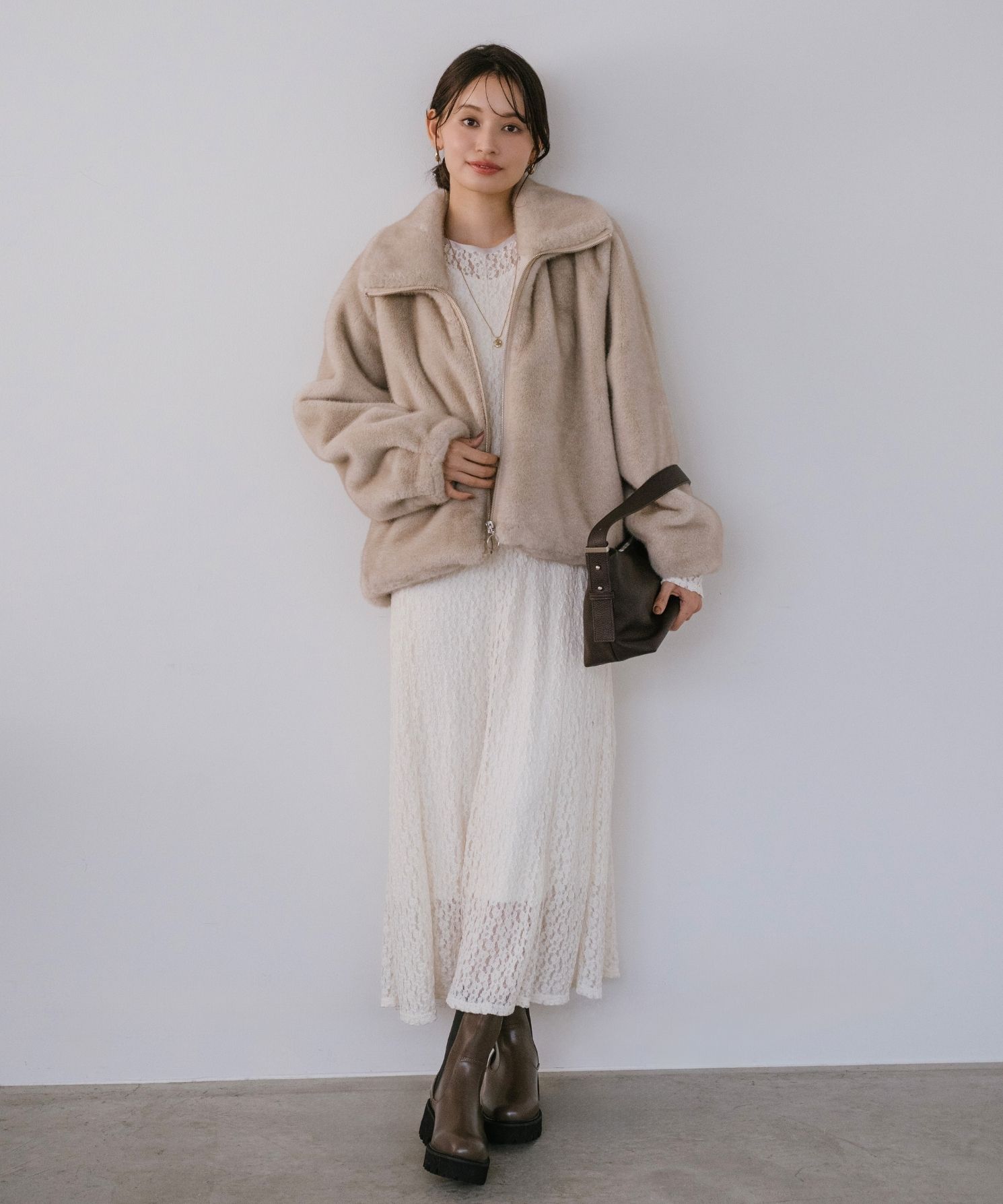 【素材感】:フェイクファー素材。毛の密度が高く高級感があります。