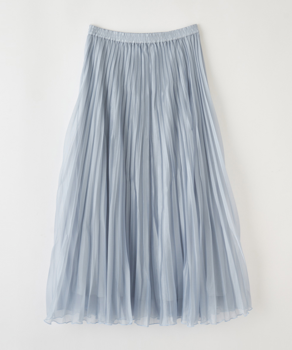 【着用感】:プリーツが細かく、また広がり過ぎずすとんとした落ち感があるので、すっきり見えします。