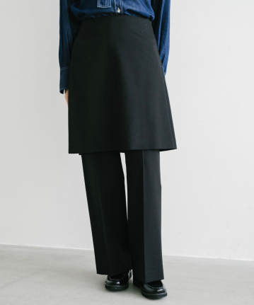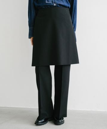 【着用感】:スカートは短過ぎないので抵抗なく着られる、パンツのシルエットが綺麗で細見えする
