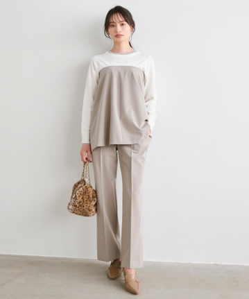 【着用感】:スカートは短過ぎないので抵抗なく着られる、パンツのシルエットが綺麗で細見えする