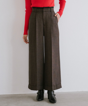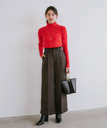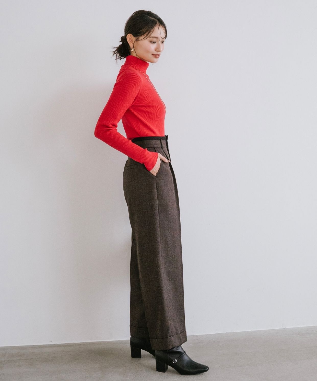 【おすすめスタイリング】:ゆったりめ且つ裾がダブルでボリュームがあるのでトップスはコンパクトなものと合わせたいです。