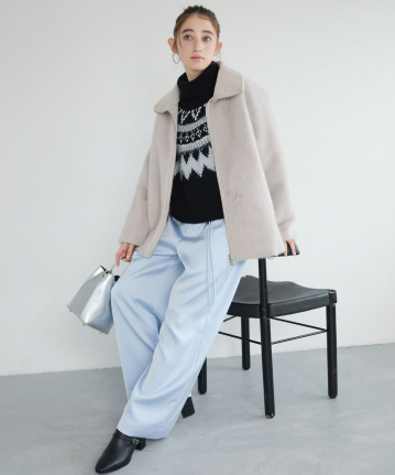 【おすすめスタイリング】:短丈やコンパクトなサイズ感のトップスと合わせるとバランス良く着られおすすめです‼︎