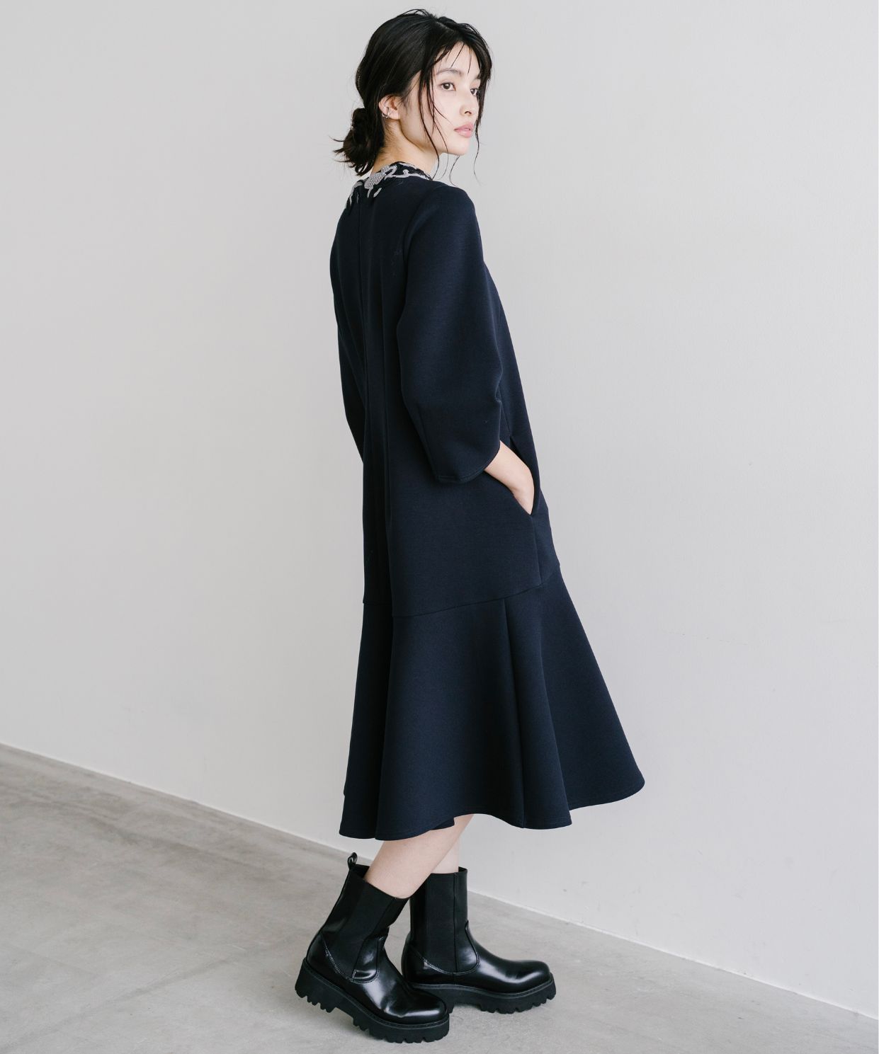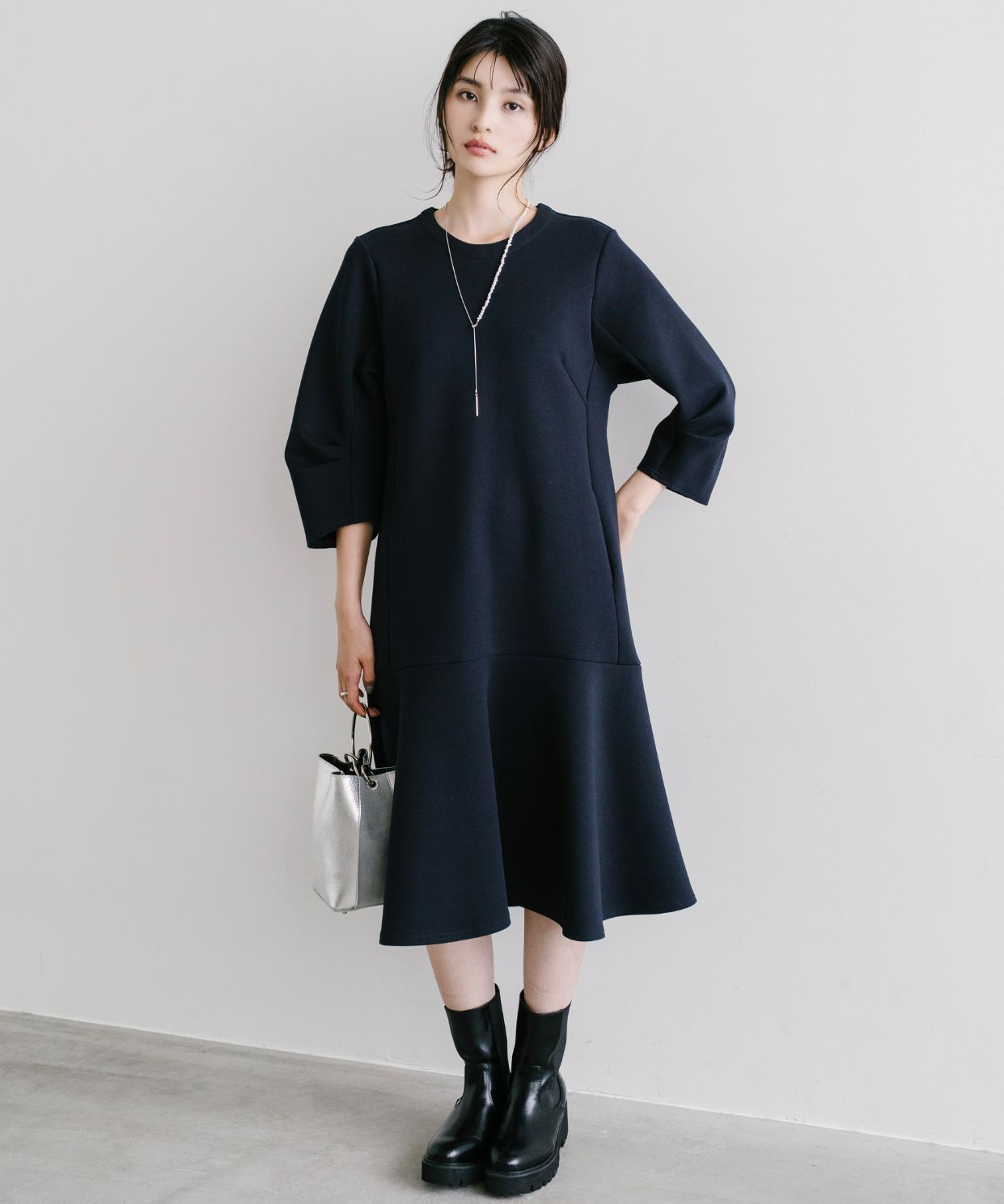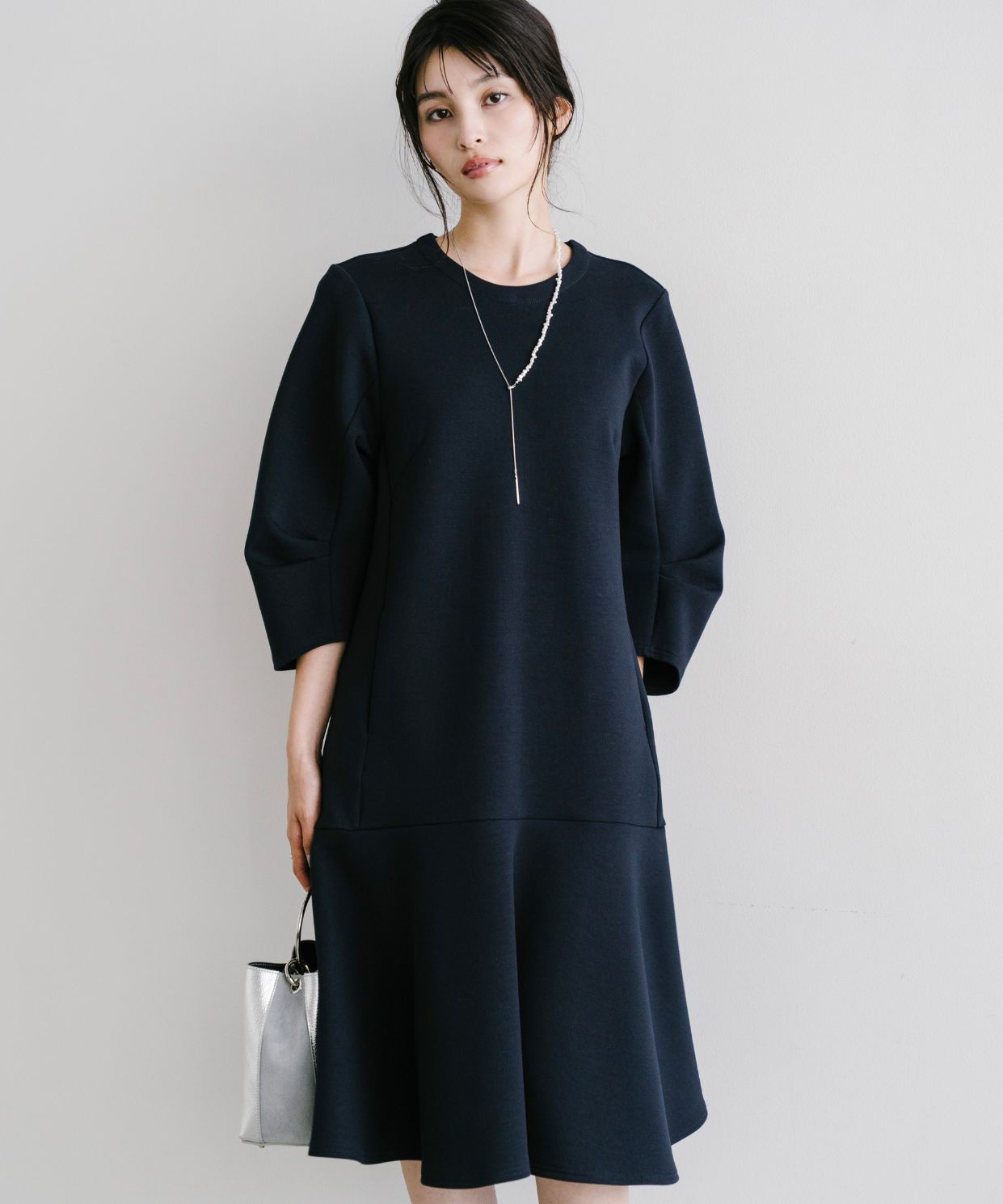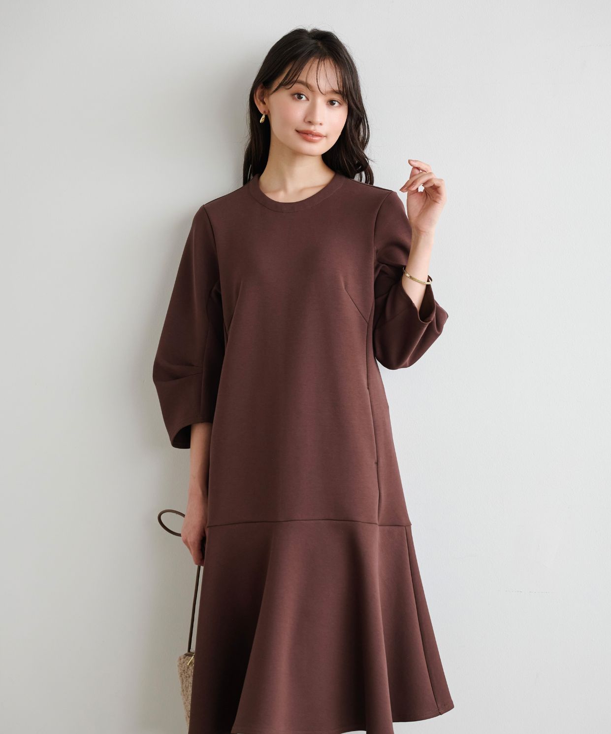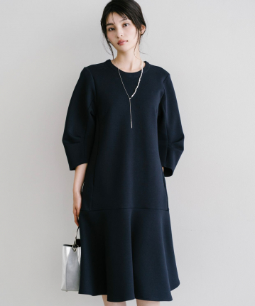・ウエストから裾にかけてふわっと広がり、伸縮性に優れた素材を使用しているので、締め付けがなくリラックス感のある着心地です。