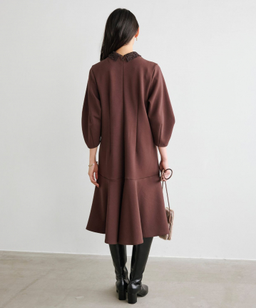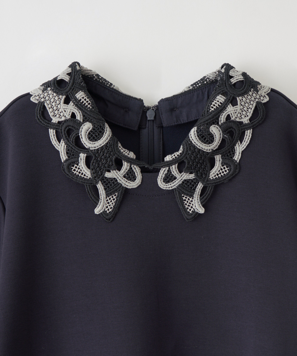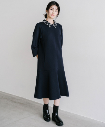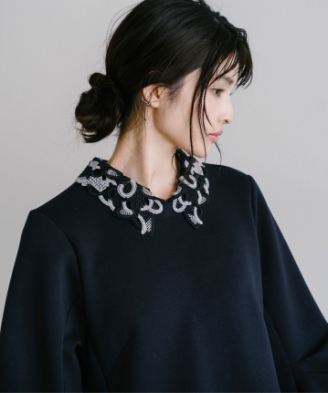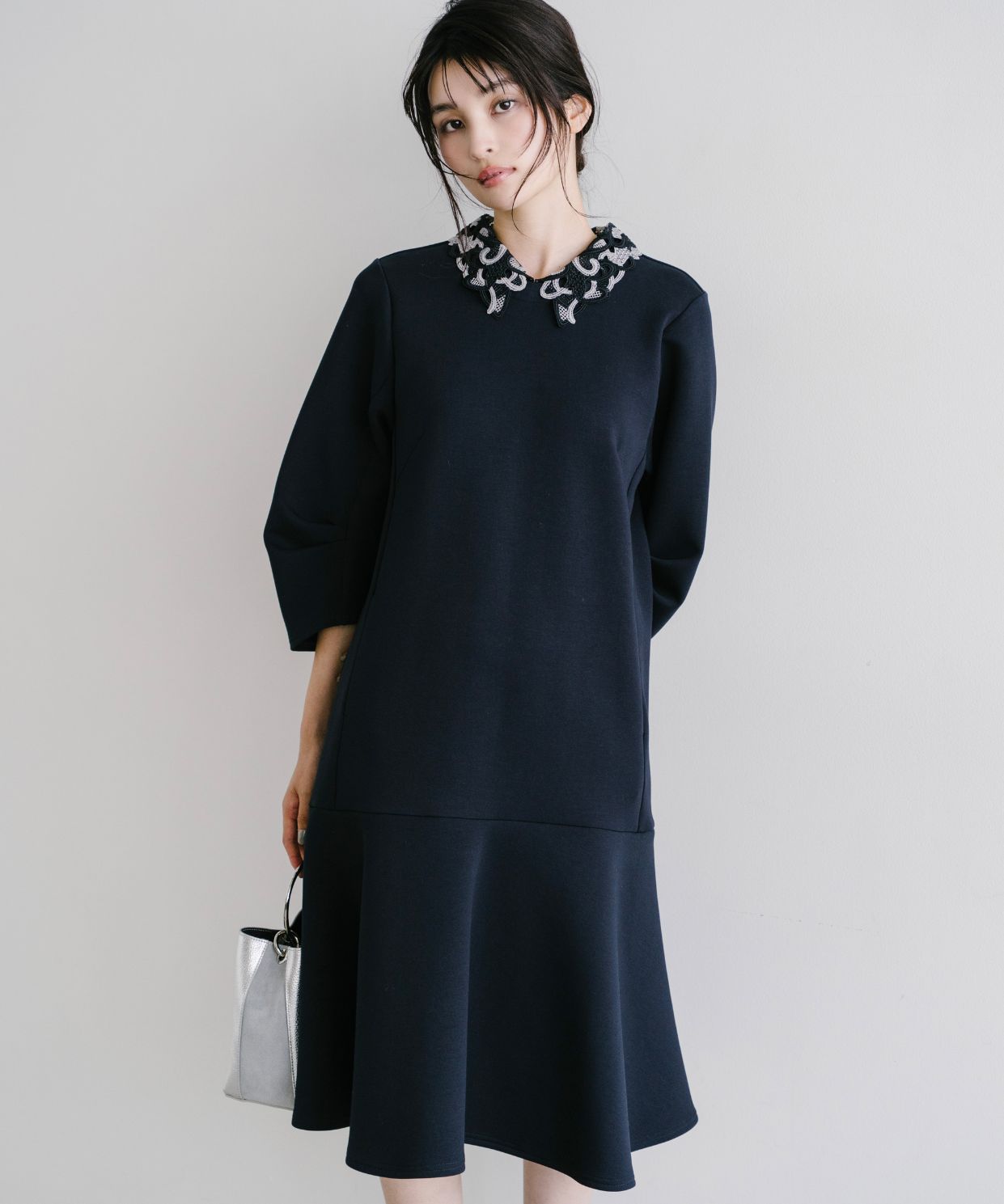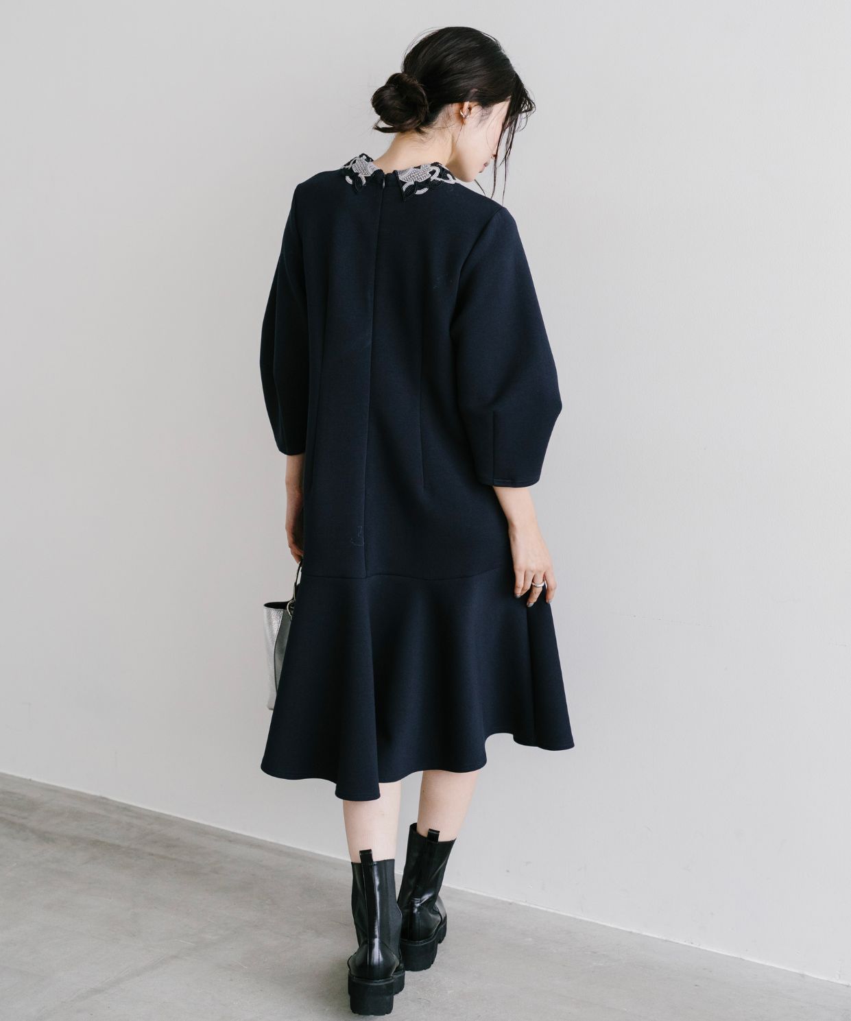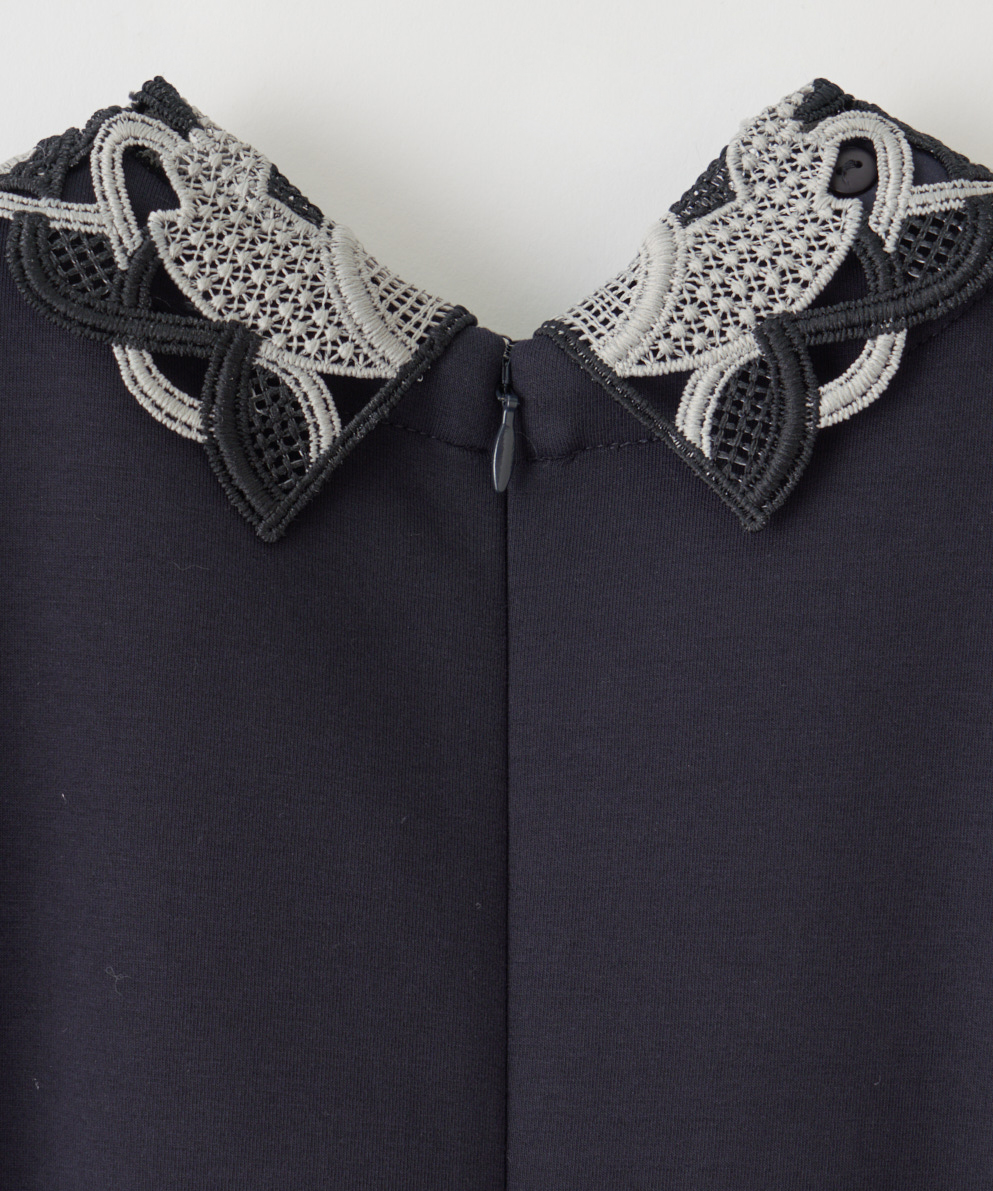 ・取り外し可能な刺繍衿が付いたミニワンピースです。セレモニーから普段使いまで幅広いシーンに使えるワンピースです。