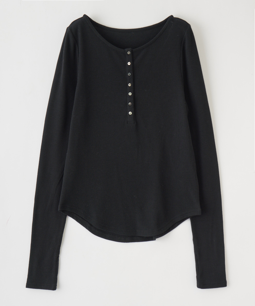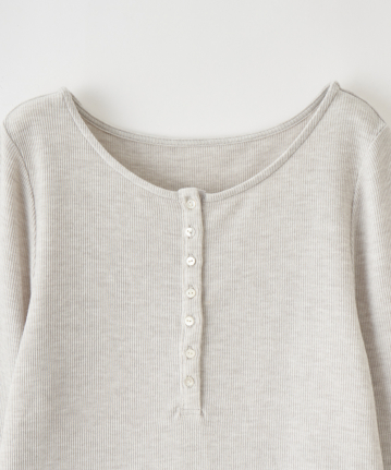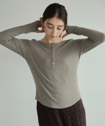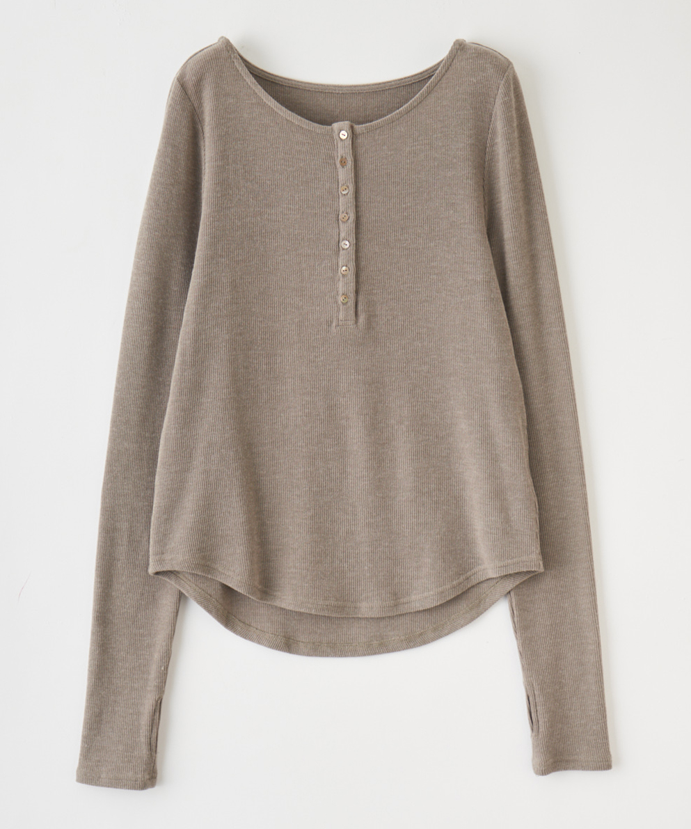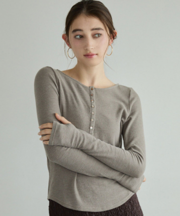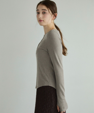 ・トレンドのヘンリーネックディティールを取り入れた、リブ組織のカットソーです。