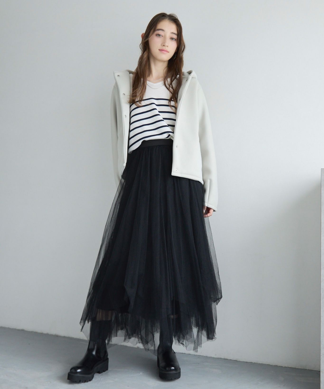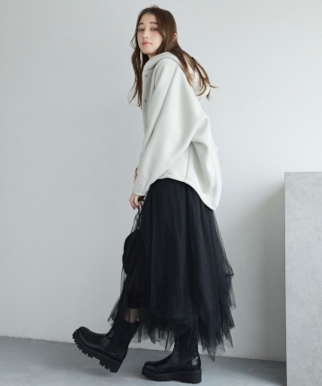 【おすすめスタイリング】:キレイめなスカートと合わせたコーディネート。