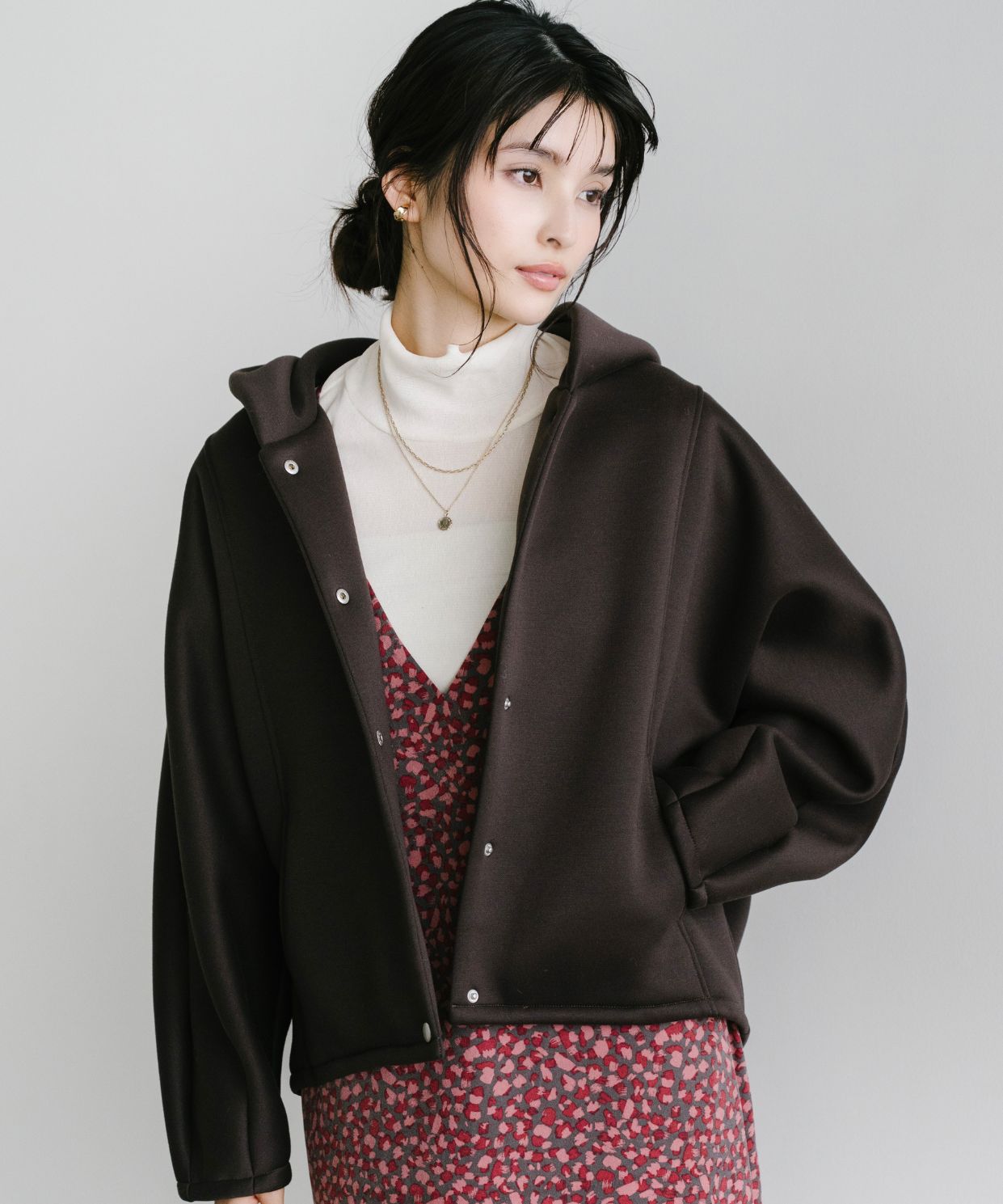 【着用感】:インナーに少し厚手のニットなどを着用してもごわつきません。