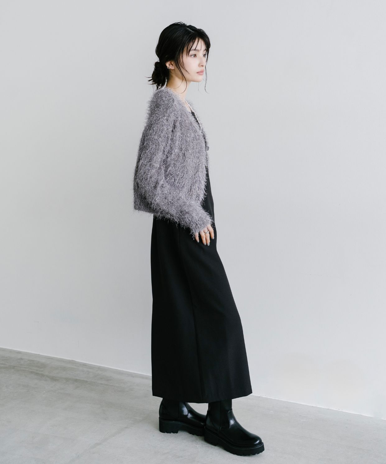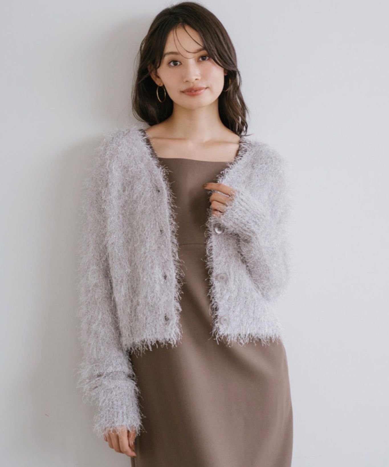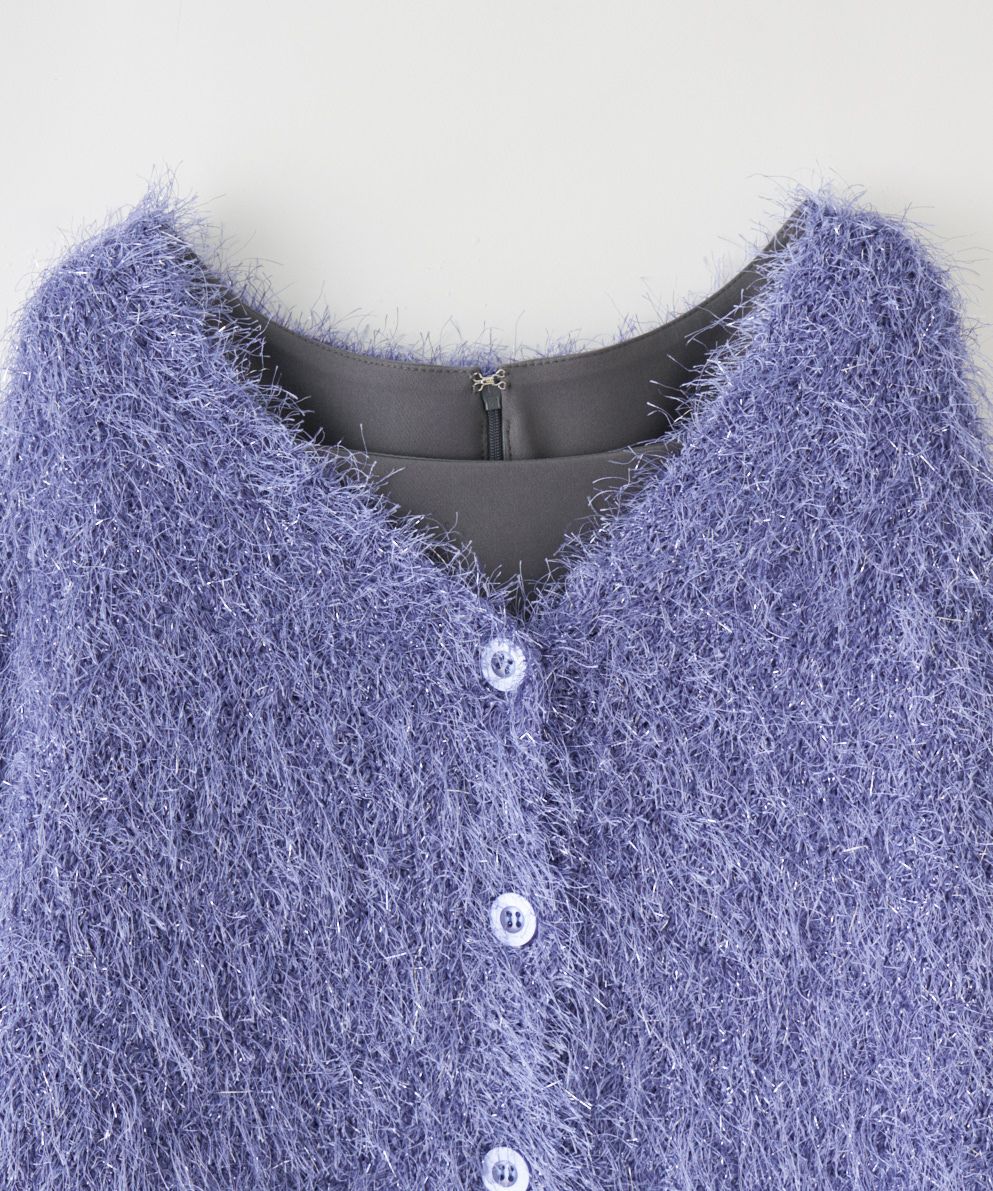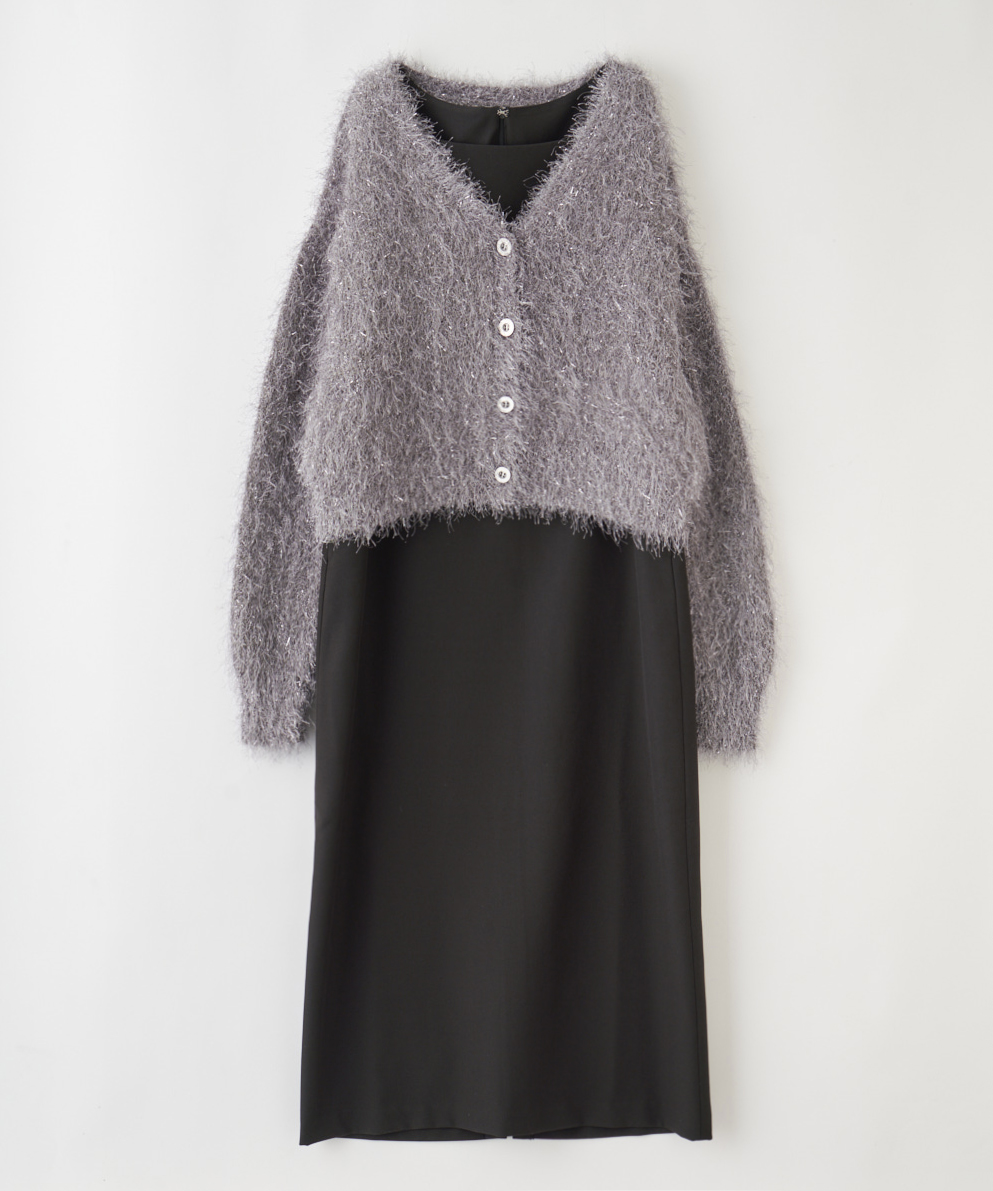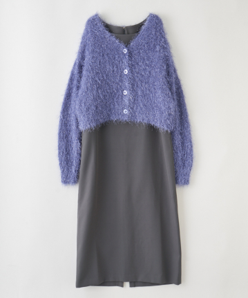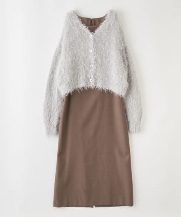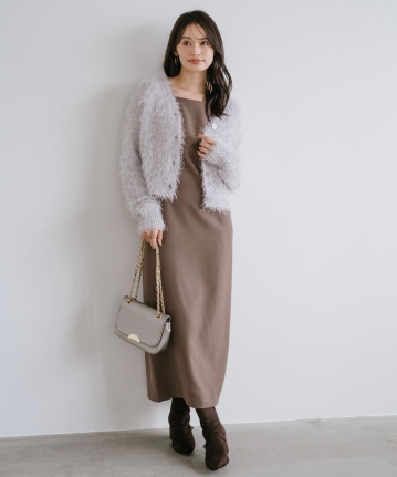 【素材感】:カーディガンはふわふわ。ワンピースはハリ感のある生地で透け感もない。