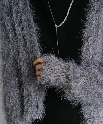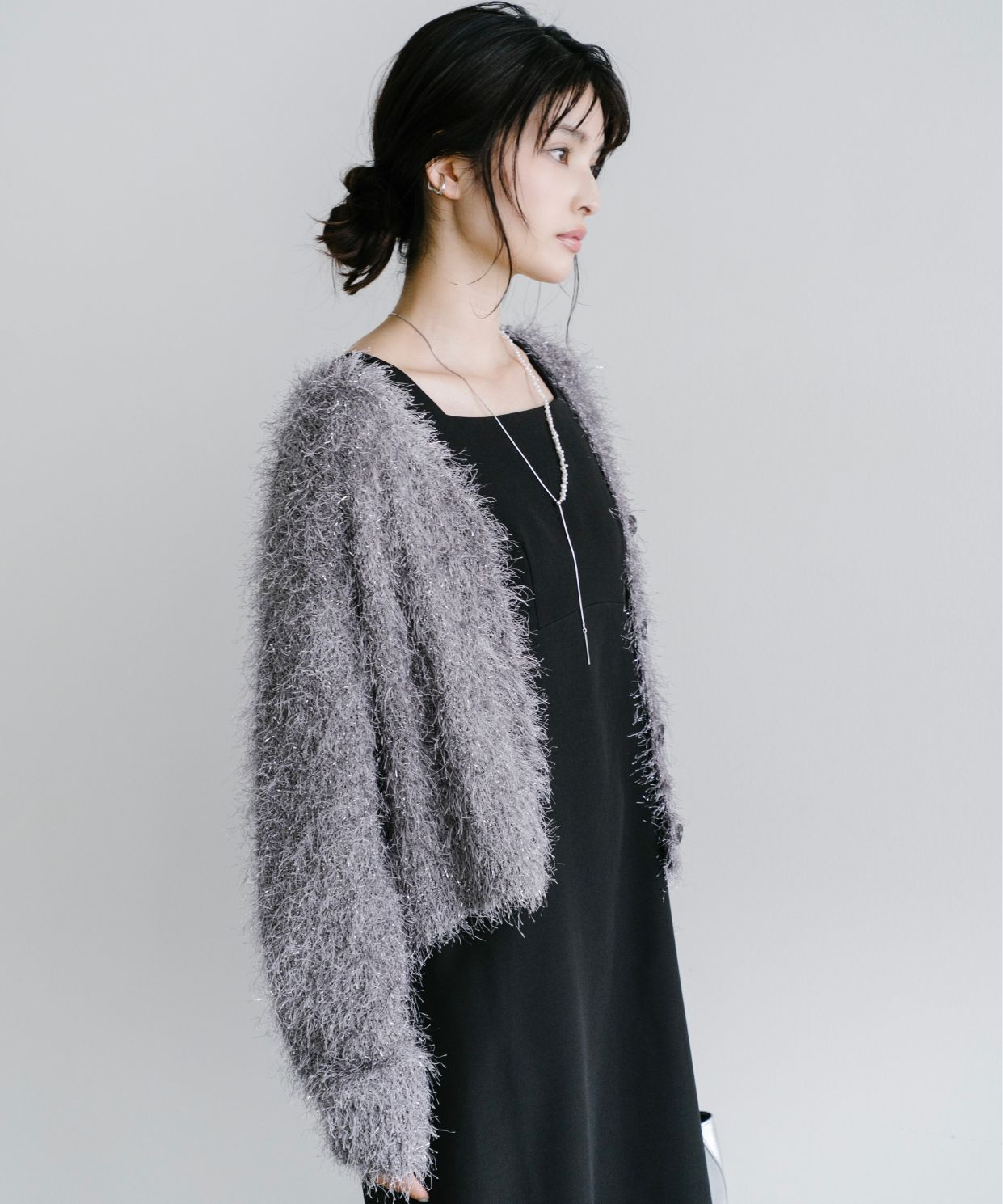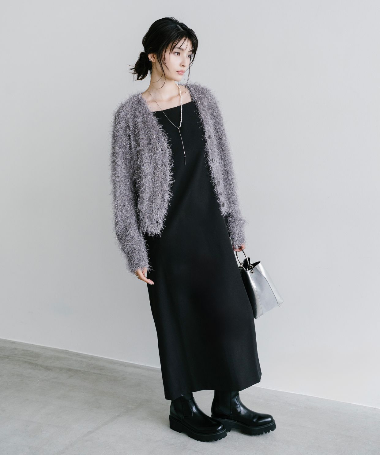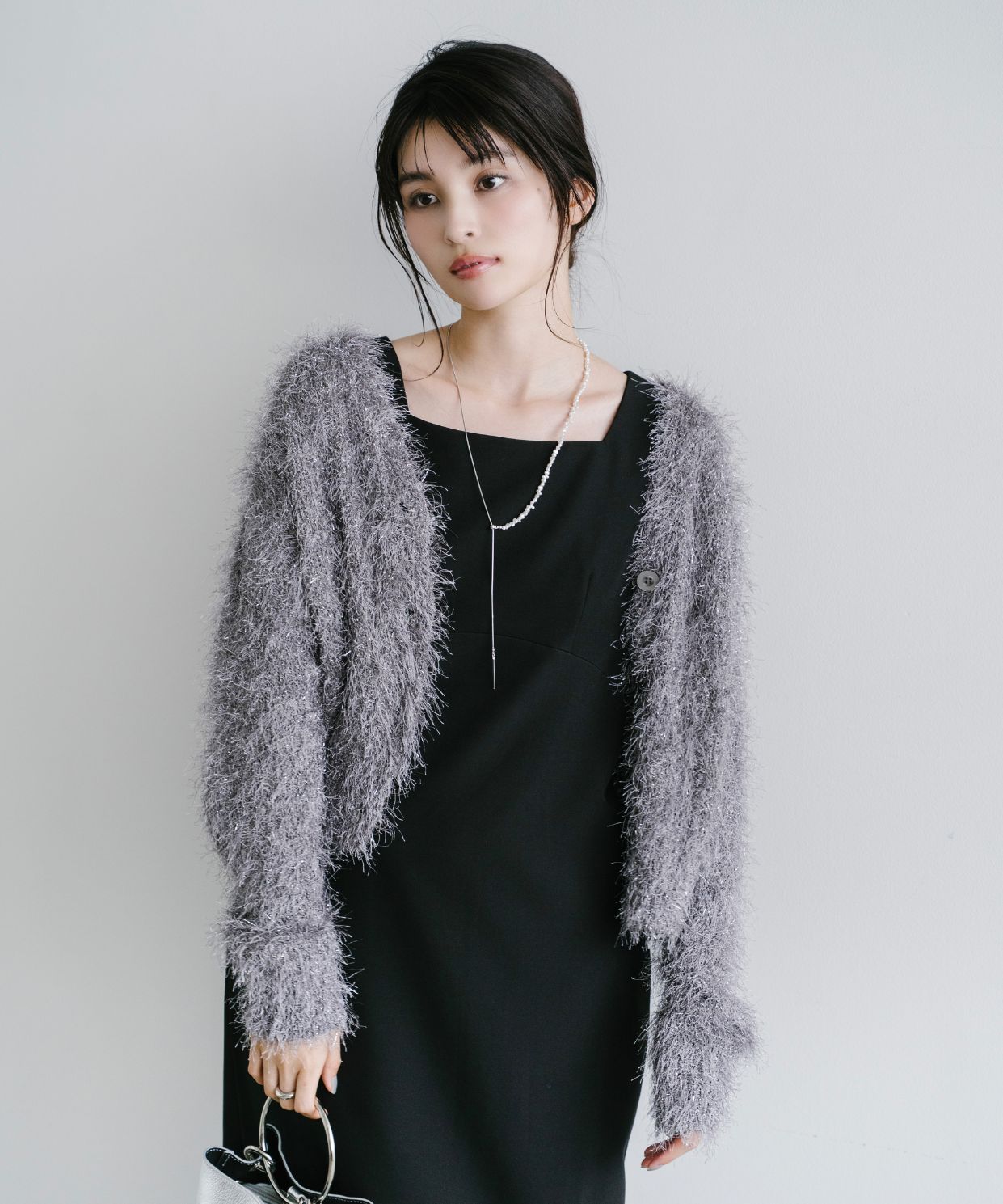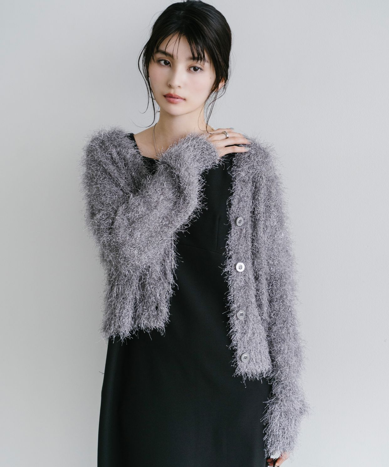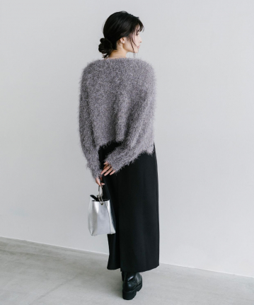 【素材感】:カーディガンはふわふわ。ワンピースはハリ感のある生地で透け感もない。