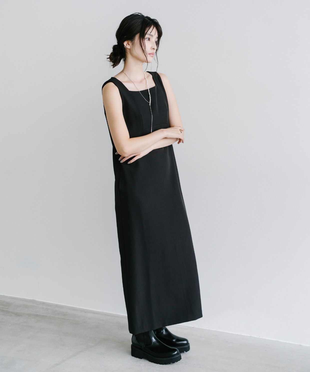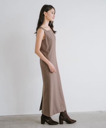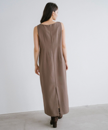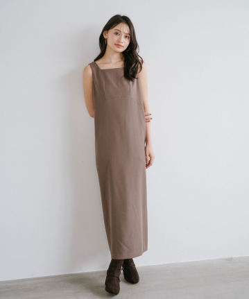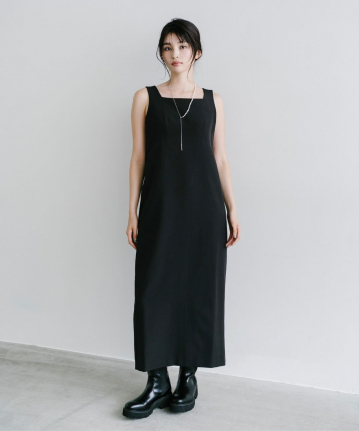 【着用感】:ワンピースは細見えするが、意外とゆとりがあるのでインナーなども中に着やすい