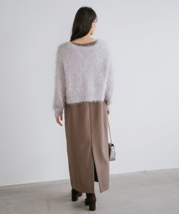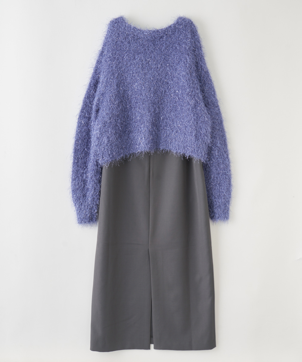 【素材感】:ニットは軽くて柔らかい。ワンピースはハリ感がある。