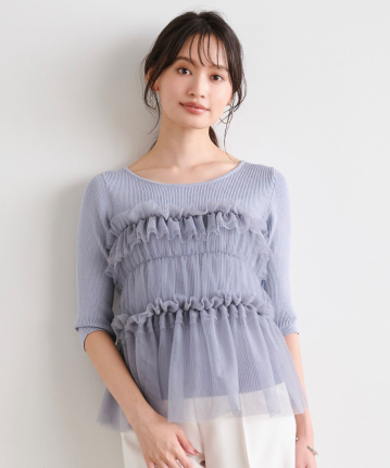 【着用感】:6分袖で安心。チュールのボリューム感も程良いのでバストがある方でも綺麗に着られる。