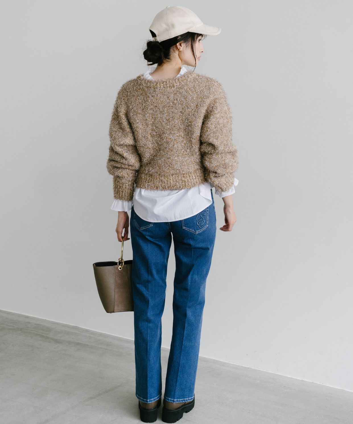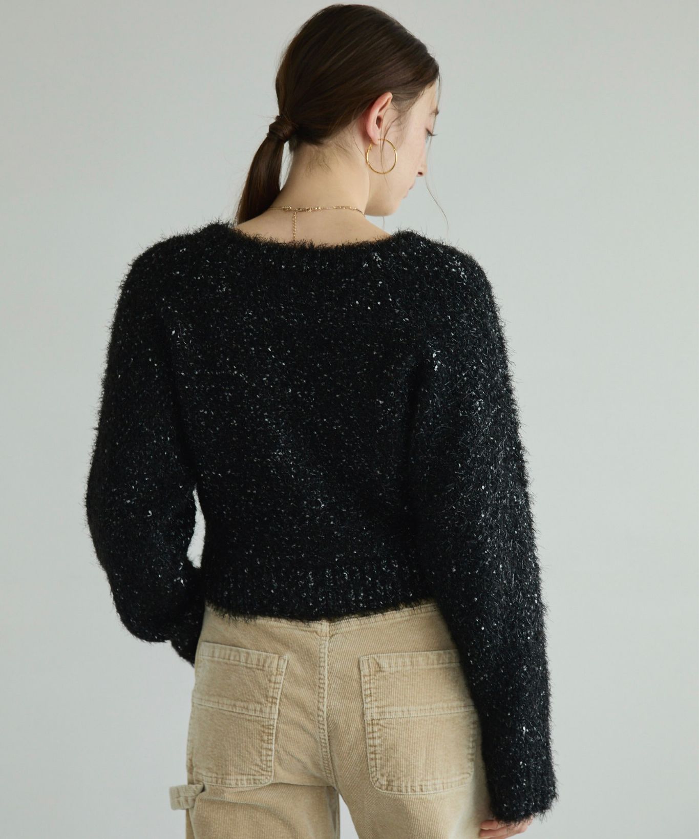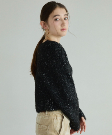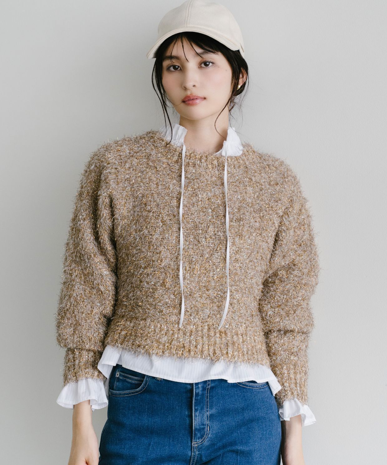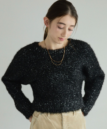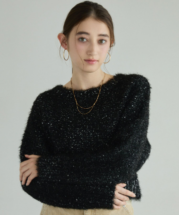 ・ラメとフェザーを組み合わせた華やかなニットプルオーバーです。