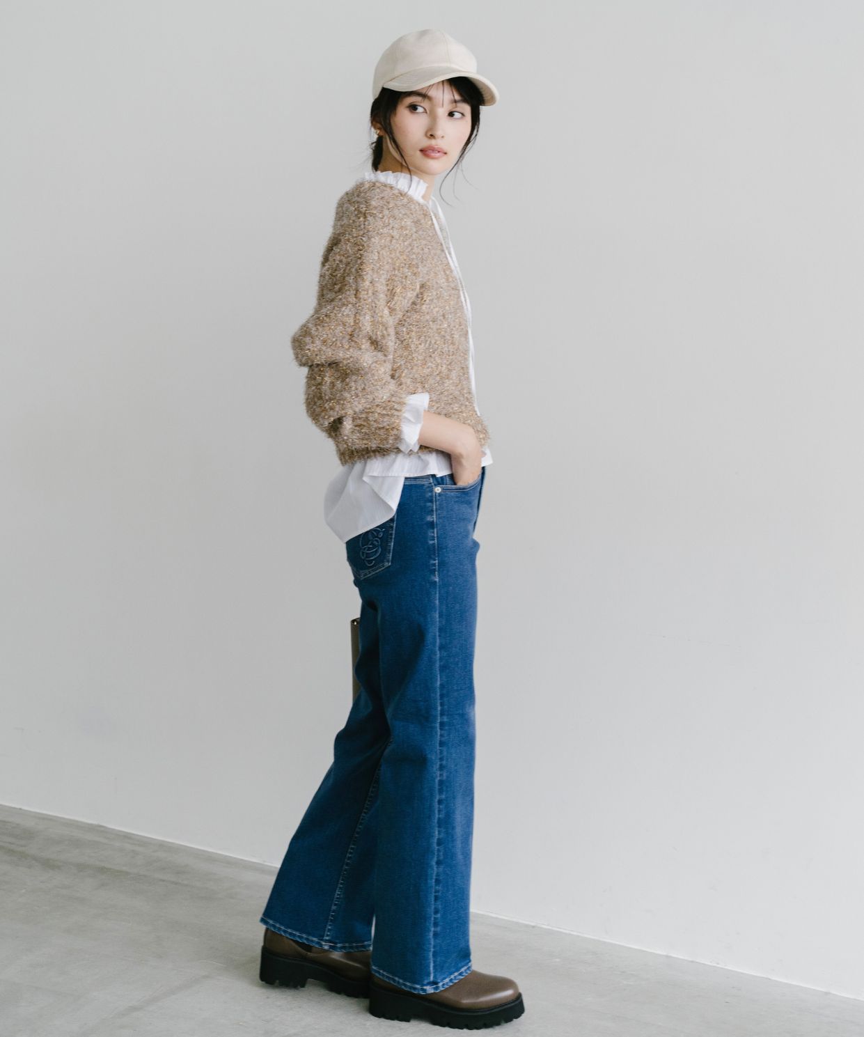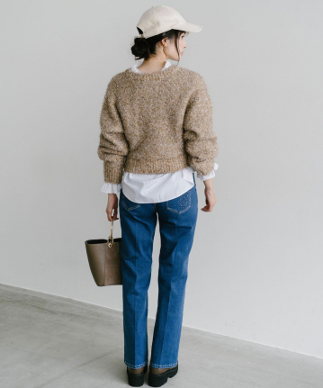 ・ショート丈+袖にボリュームがあるので、目線を上に持っていくことでスタイルアップを狙えるアイテムです。