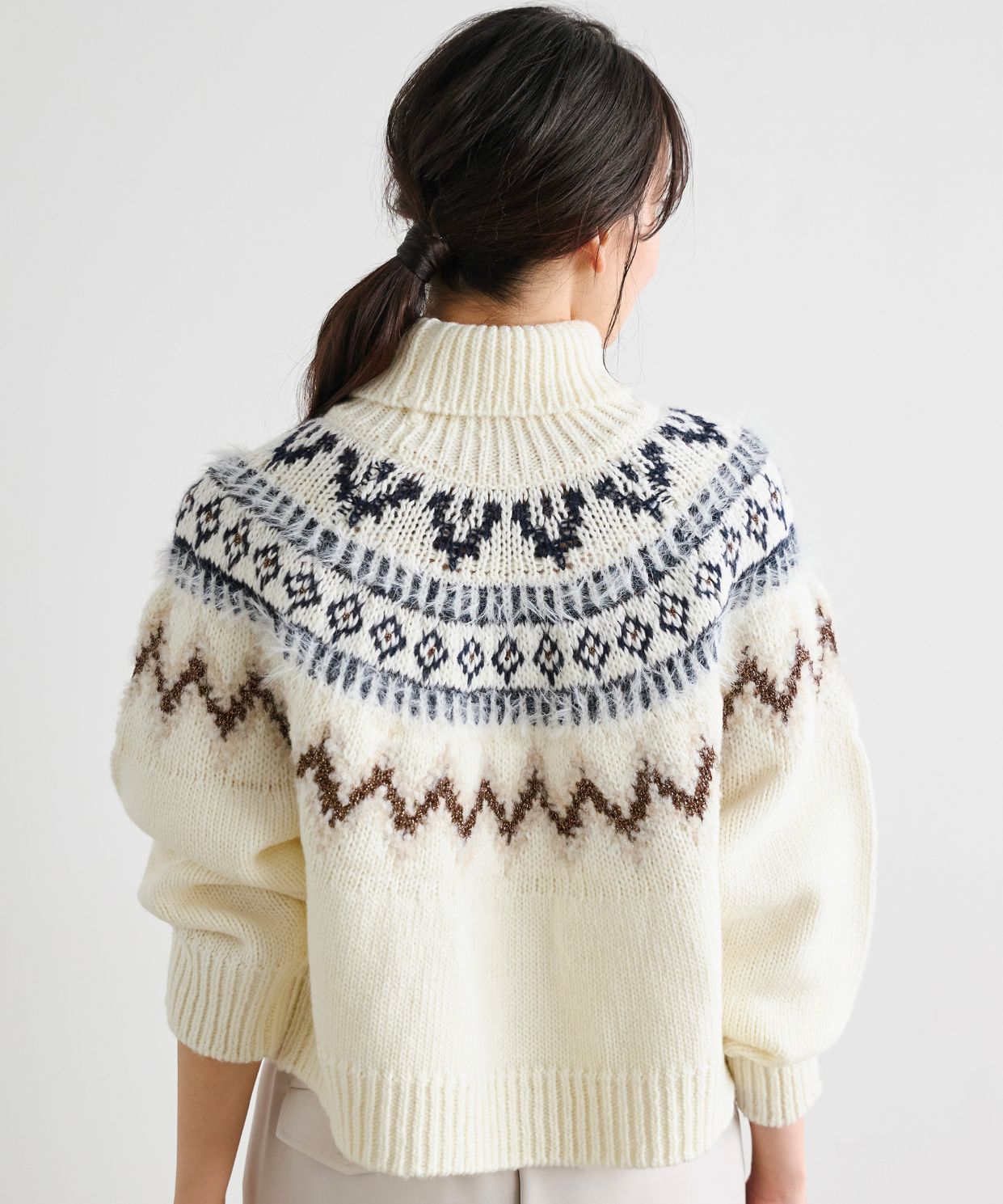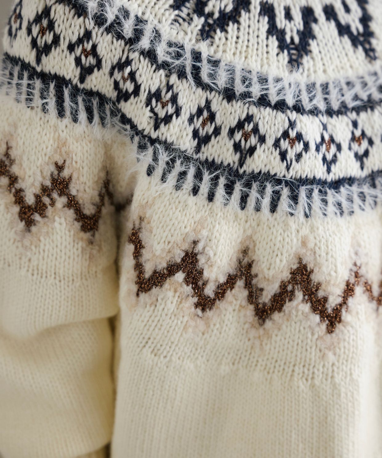 ・ざっくりと編み上げたフェアアイル柄が特長のニットプルオーバーです。