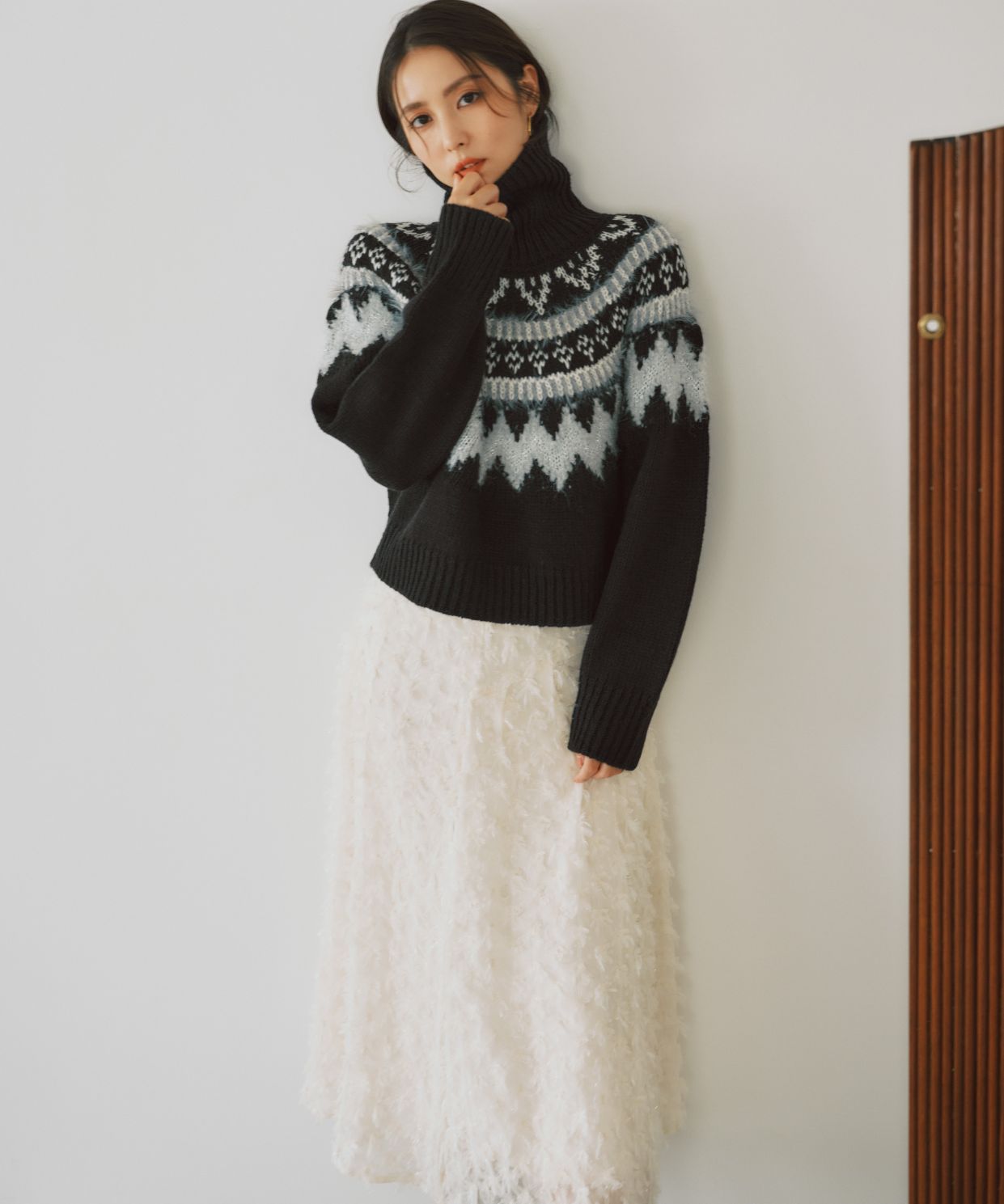 ・ざっくりと編み上げたフェアアイル柄が特長のニットプルオーバーです。