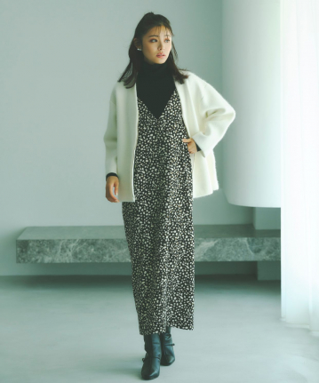【おすすめスタイリング】:ワンピースの上からサラッと羽織る大人キレイめスタイリング -