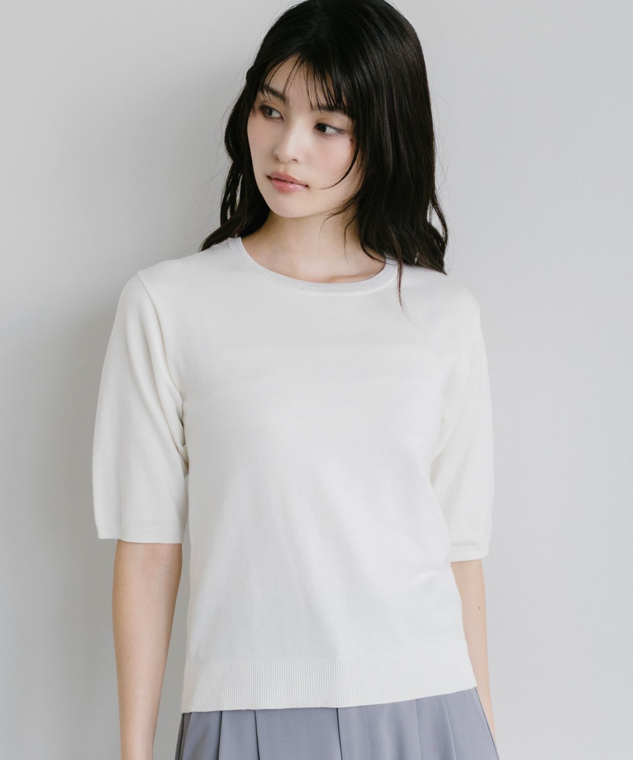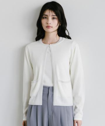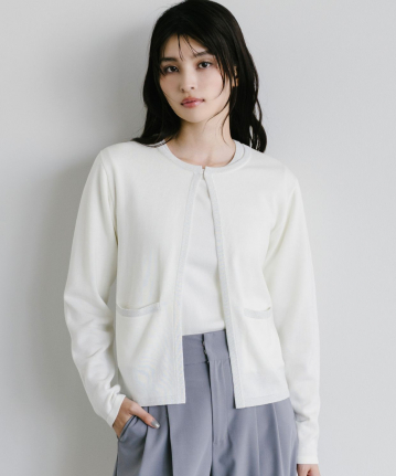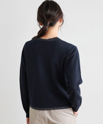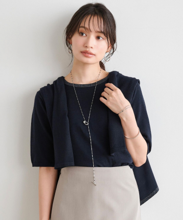 ・プルオーバーはすっきりとしたサイズ感で、カーディガンを重ねてももたつかないよう仕上げています。