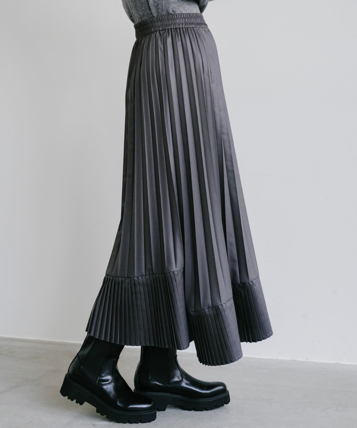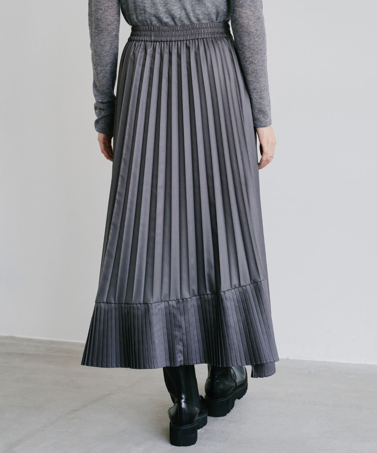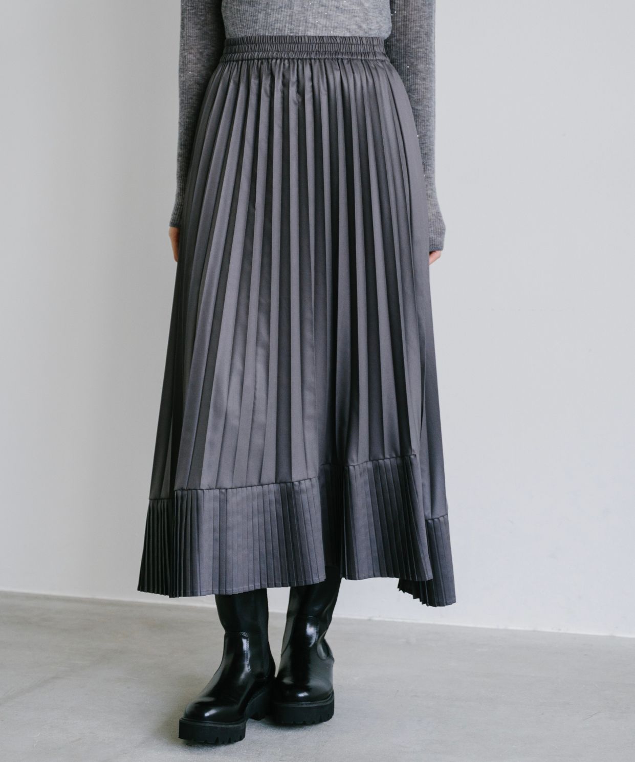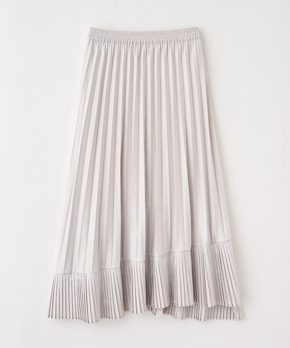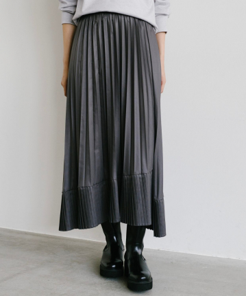 ・上品なツヤ感と動きのあるプリーツで、女性らしさとトレンド感を兼ね備えた、主役級のスカートです。