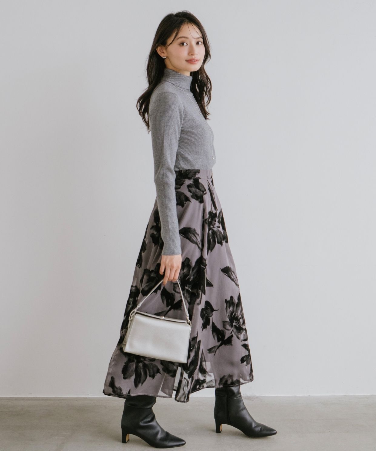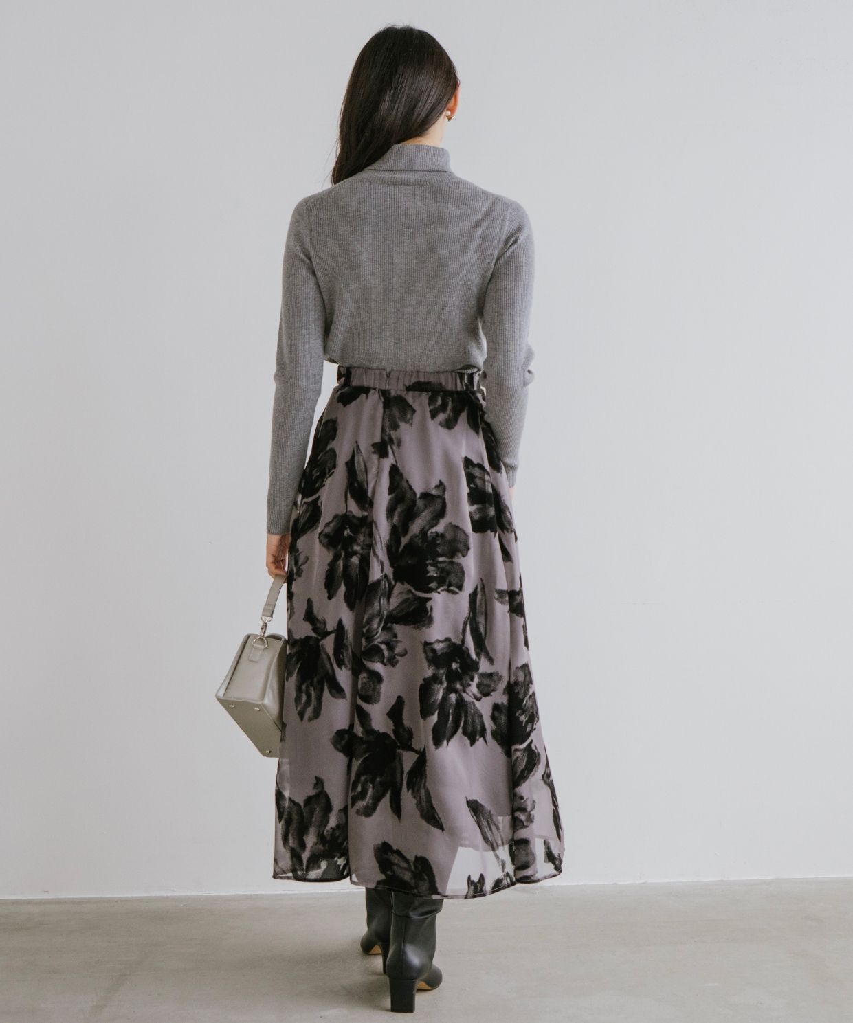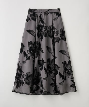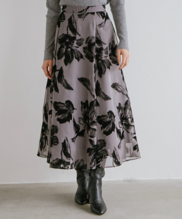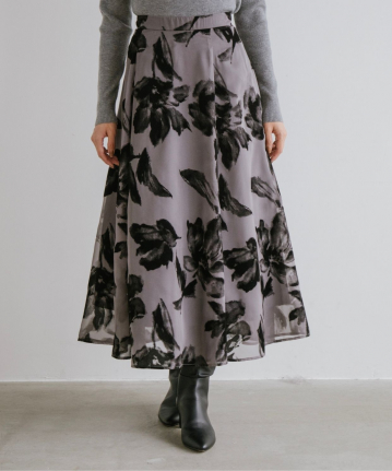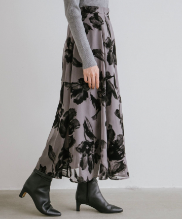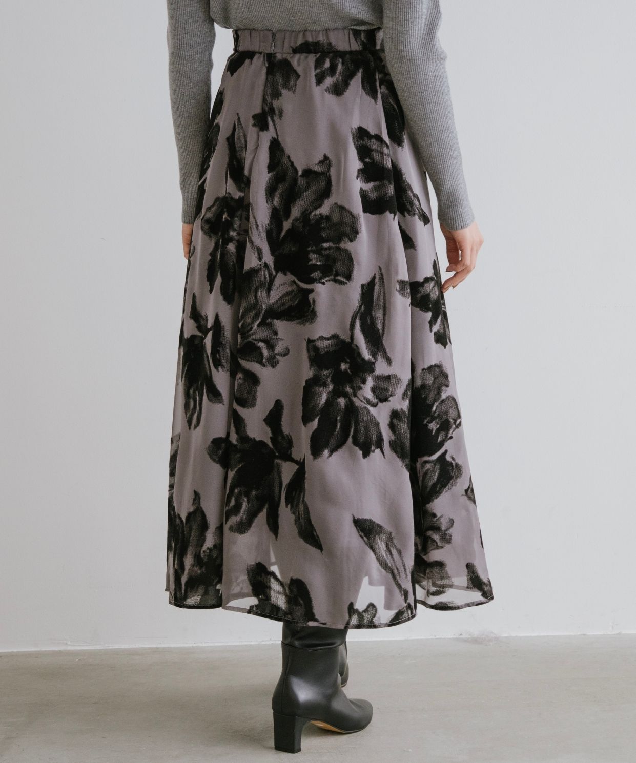 ・大胆な大花柄をフロッキープリントで表現した、華やかな印象のスカートです。