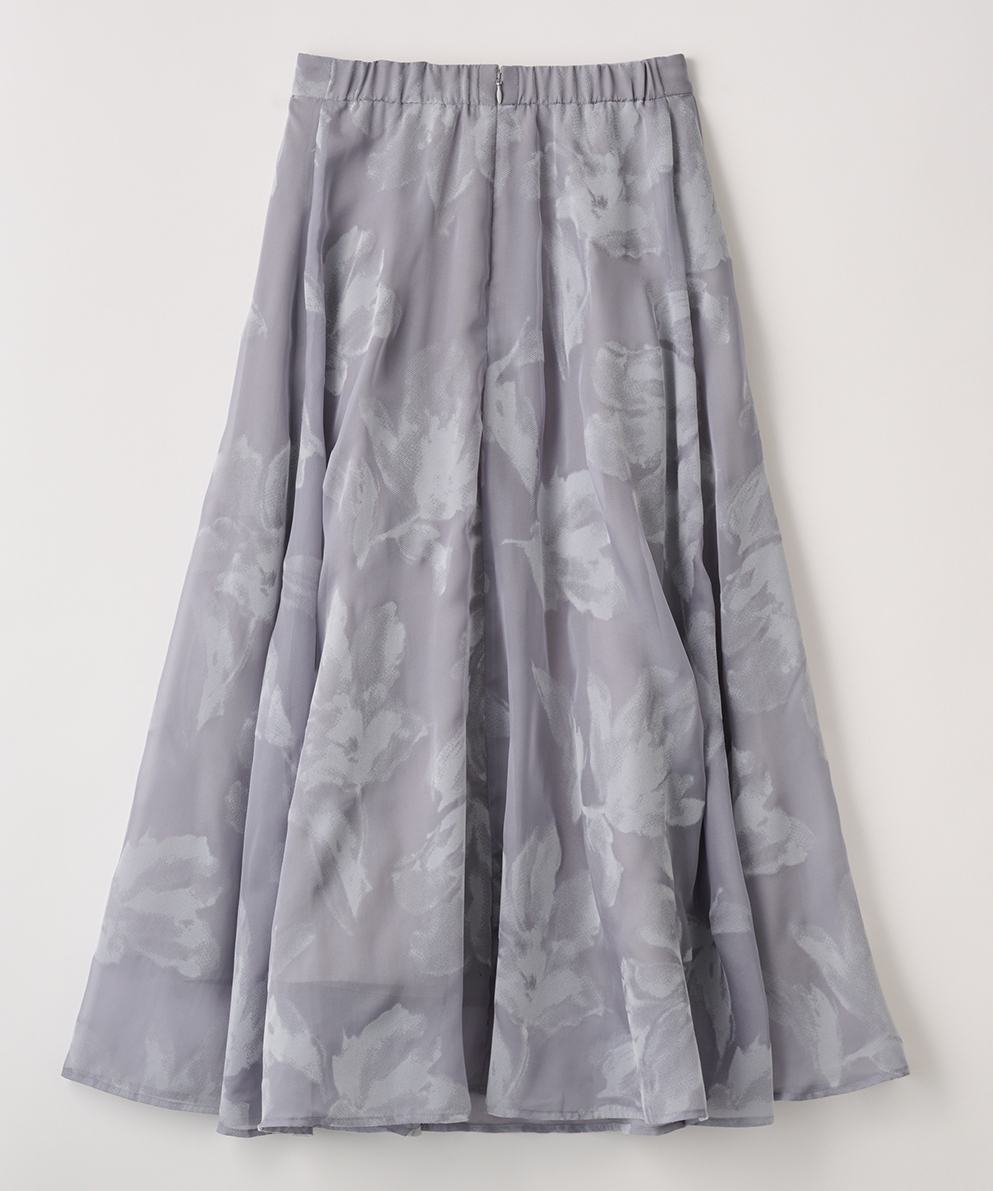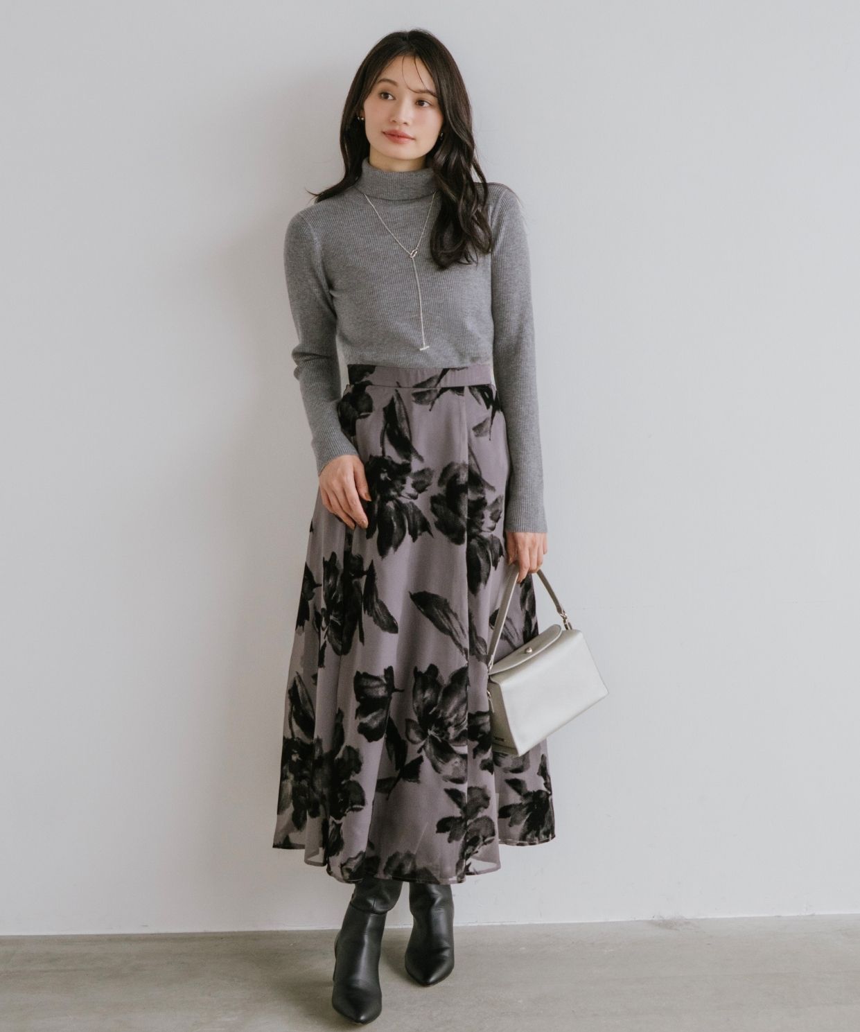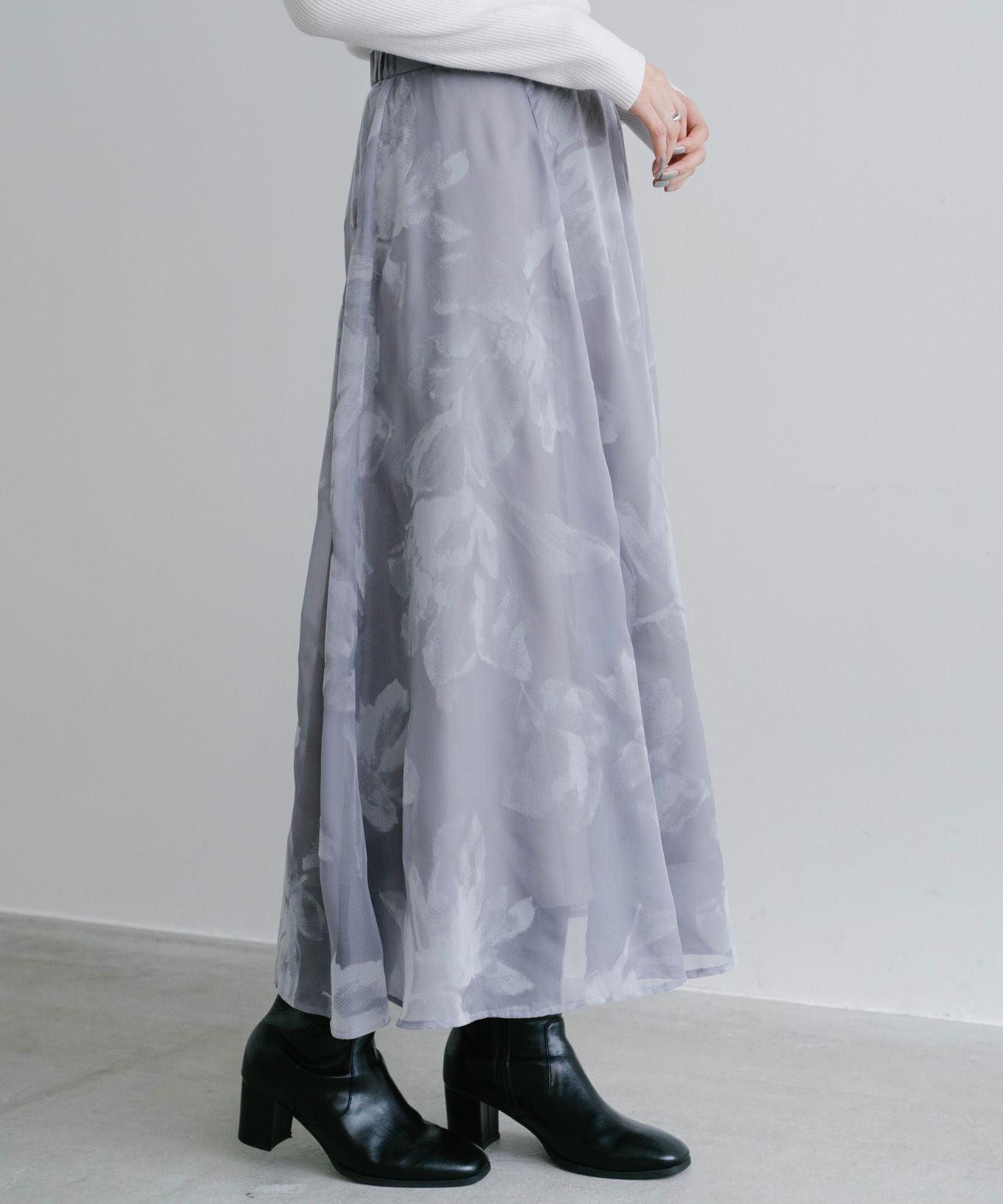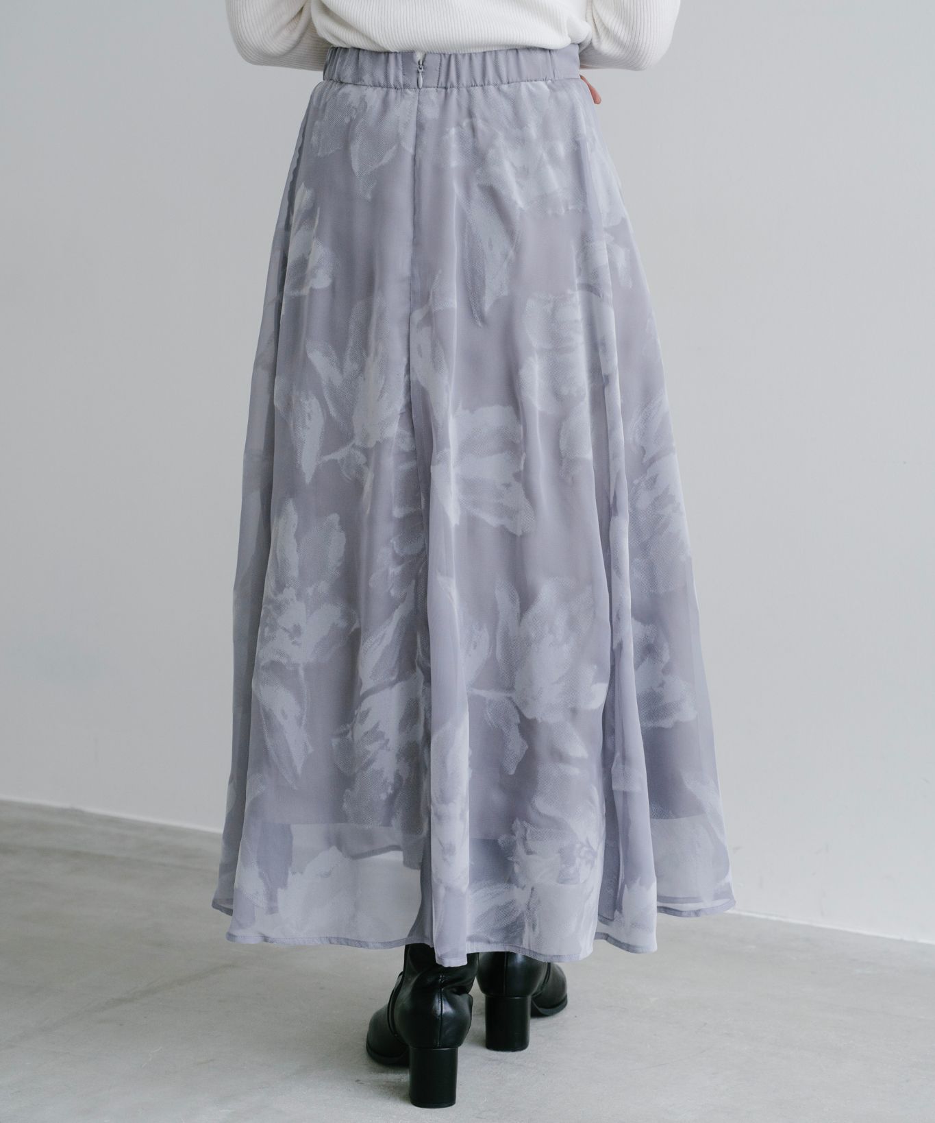 ・大胆な大花柄をフロッキープリントで表現した、華やかな印象のスカートです。