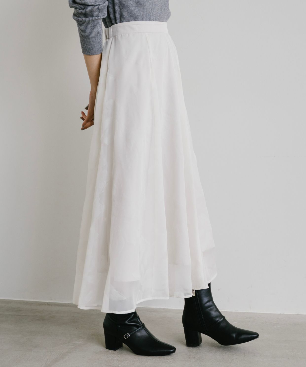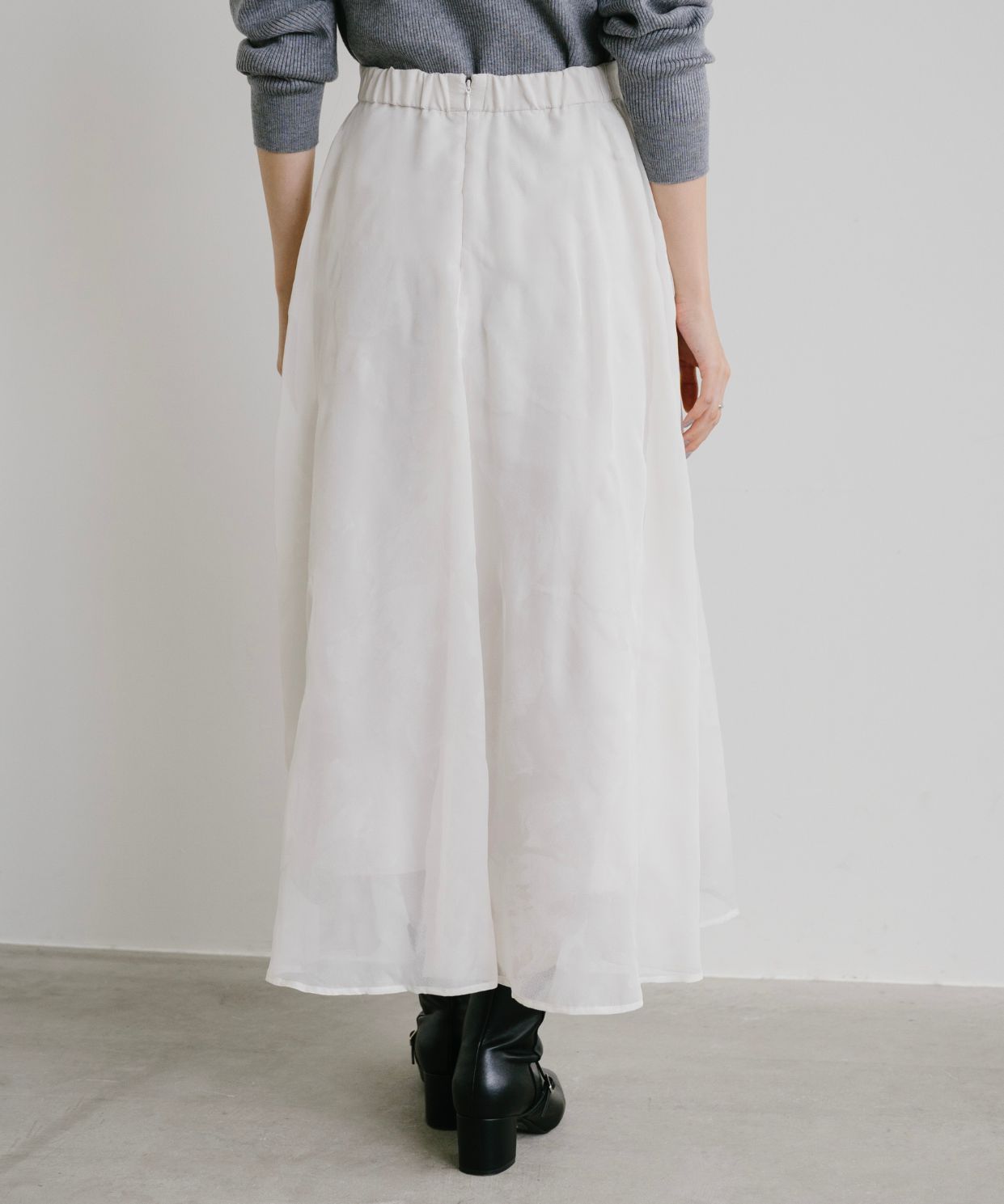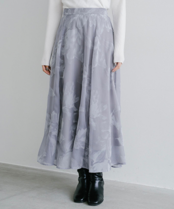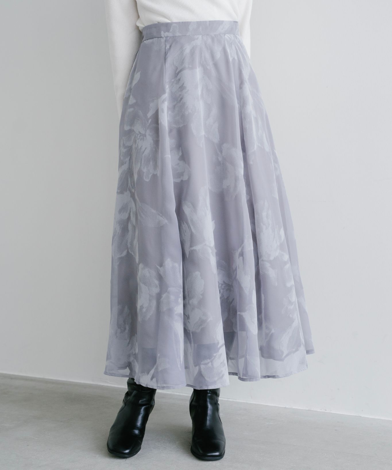 ・大胆な大花柄をフロッキープリントで表現した、華やかな印象のスカートです。