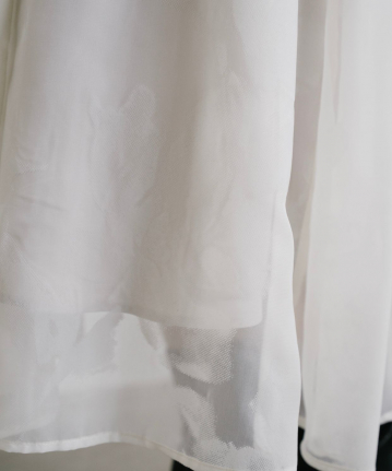 ・ふわっと広がるエアリーな生地と表面感のあるプリントで、ドラマティックなシルエットを演出します。
