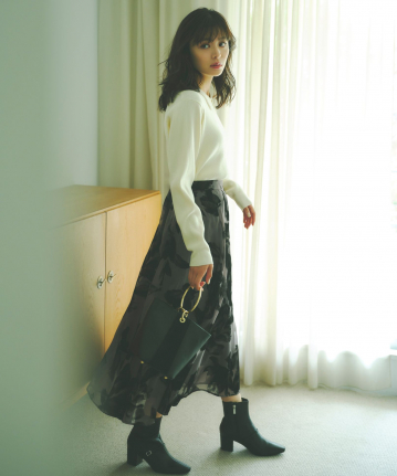【おすすめスタイリング】:タートルネックと合わせて大人フェミニンなスタイル