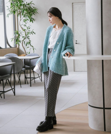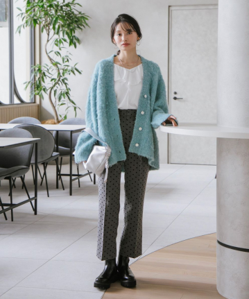 【おすすめスタイリング】:ボリュームのあるカーディガンと合わせたスタイリング -