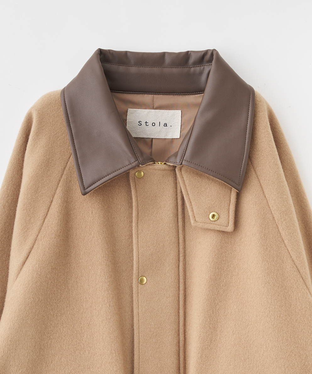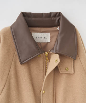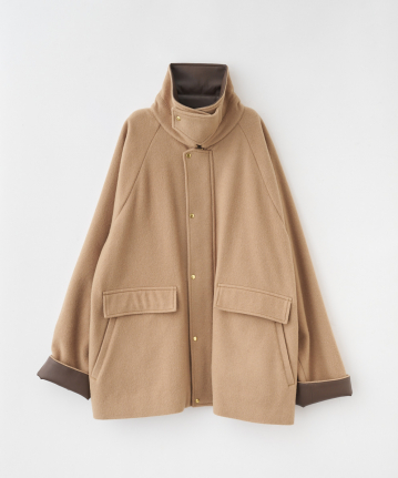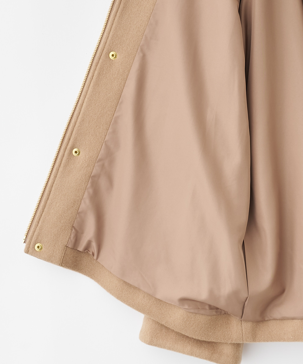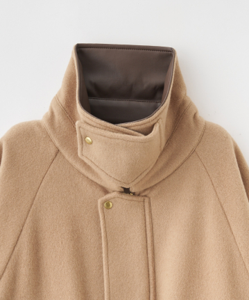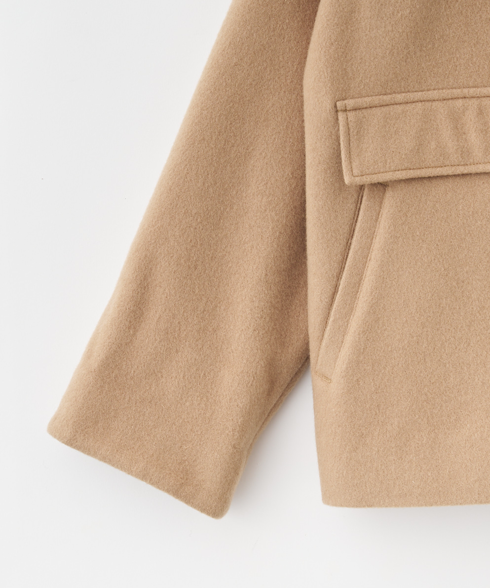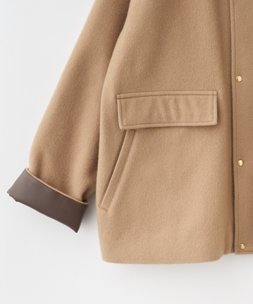 ・ウール、カシミヤ、ナイロンを混紡したビーバー素材です。カシミヤが30%と高混率で、手触りよく、ソフトで膨らみのある風合いが特長の上質な素材です。