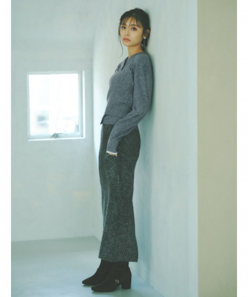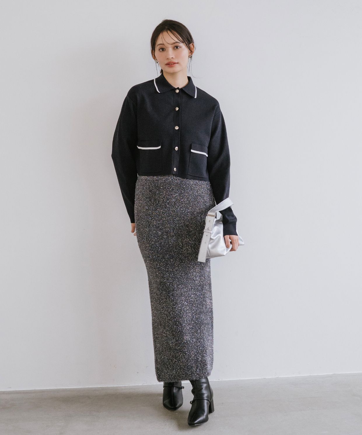 ・ラメの素材で存在感がありながら、シンプルですっきりとしたタイトシルエットのデザインです。ストレッチ性とウエストゴムの仕様で穿きやすく、着心地も抜群。
