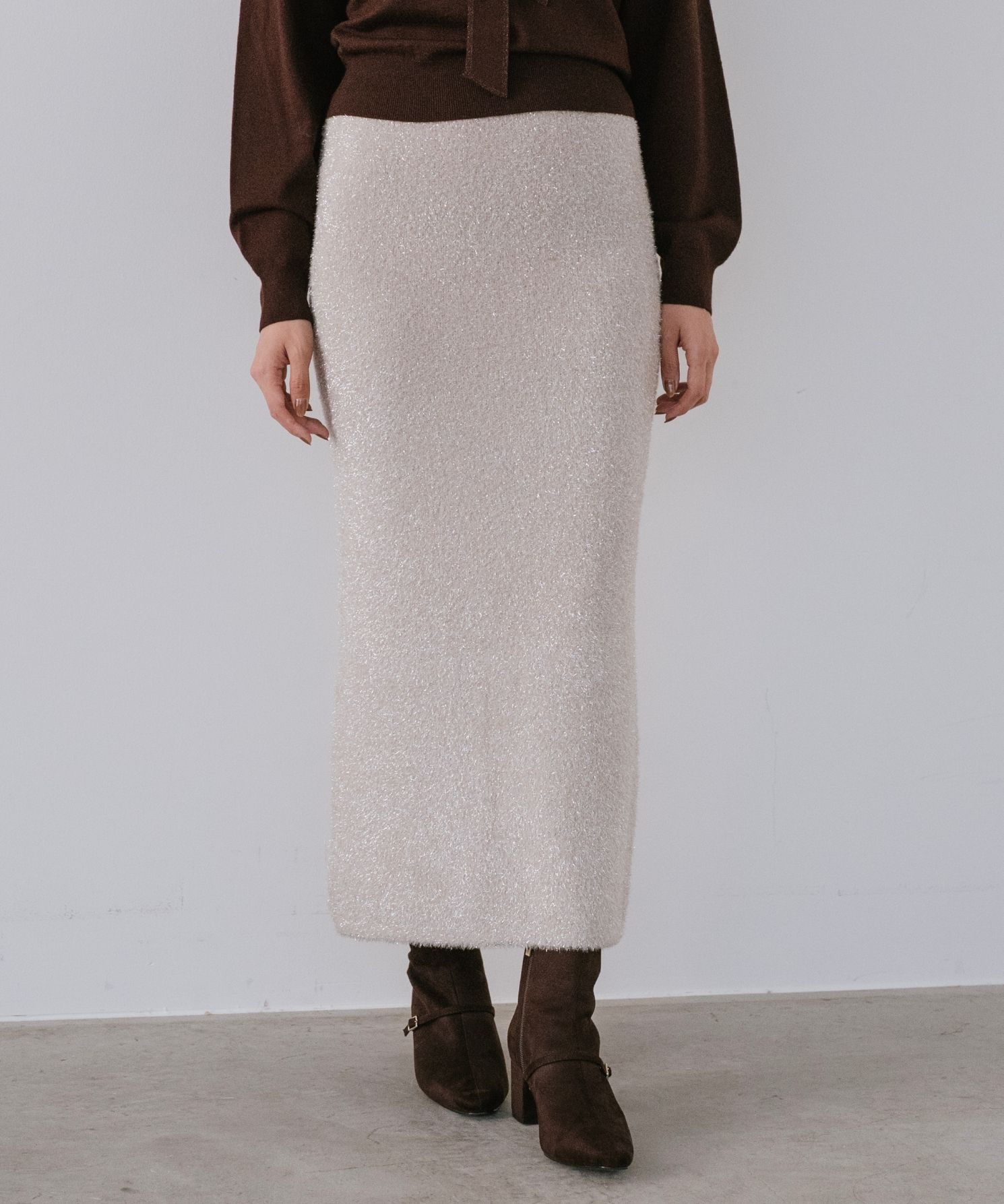 ・シンプルなトップスとの合わせでも、存在感のある着こなしが叶う、フワフワの毛足が魅力のニットスカートです。