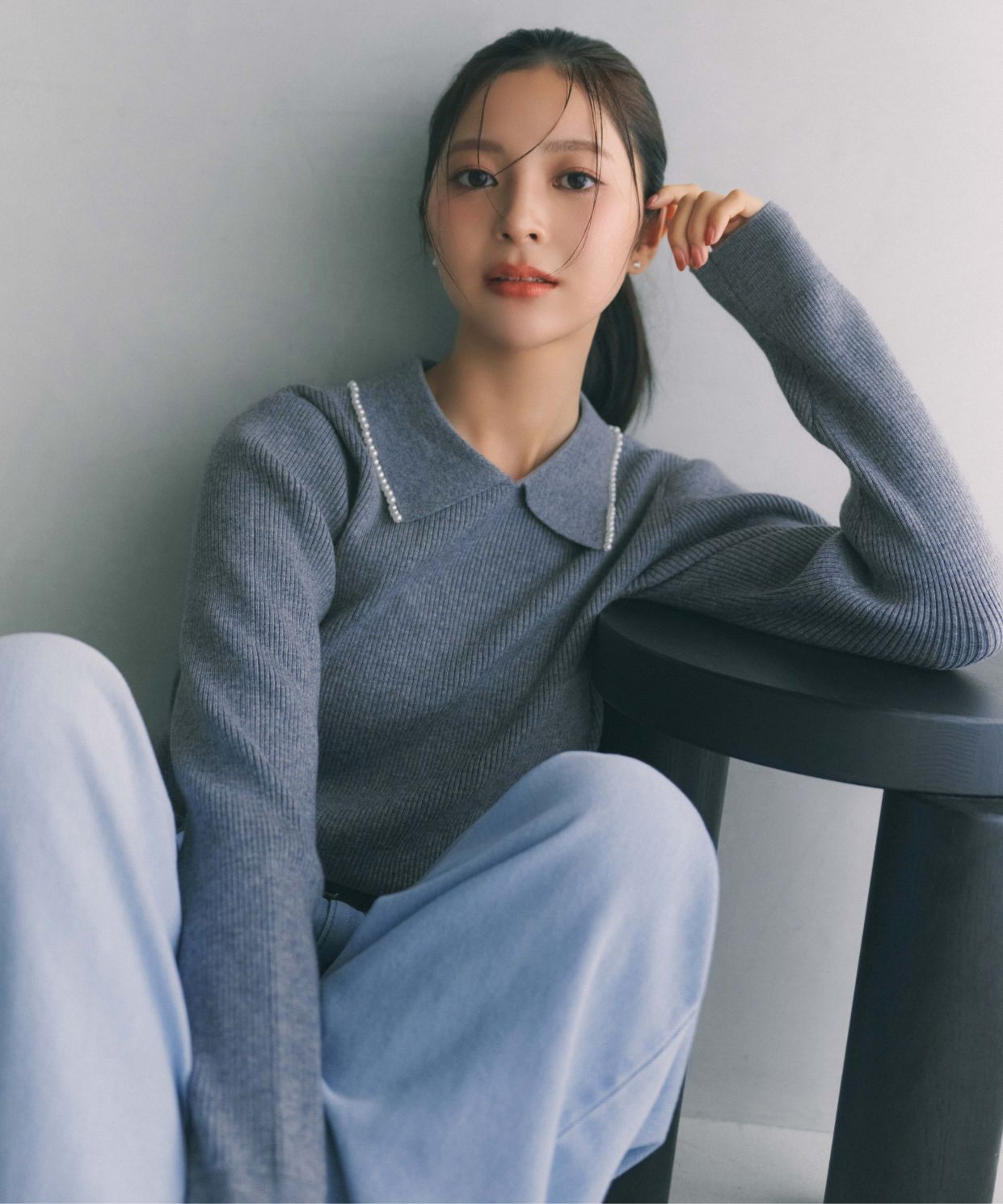 【おすすめスタイリング】:グレー系のワイドパンツと合わせた、きれいめスタイル。 -
