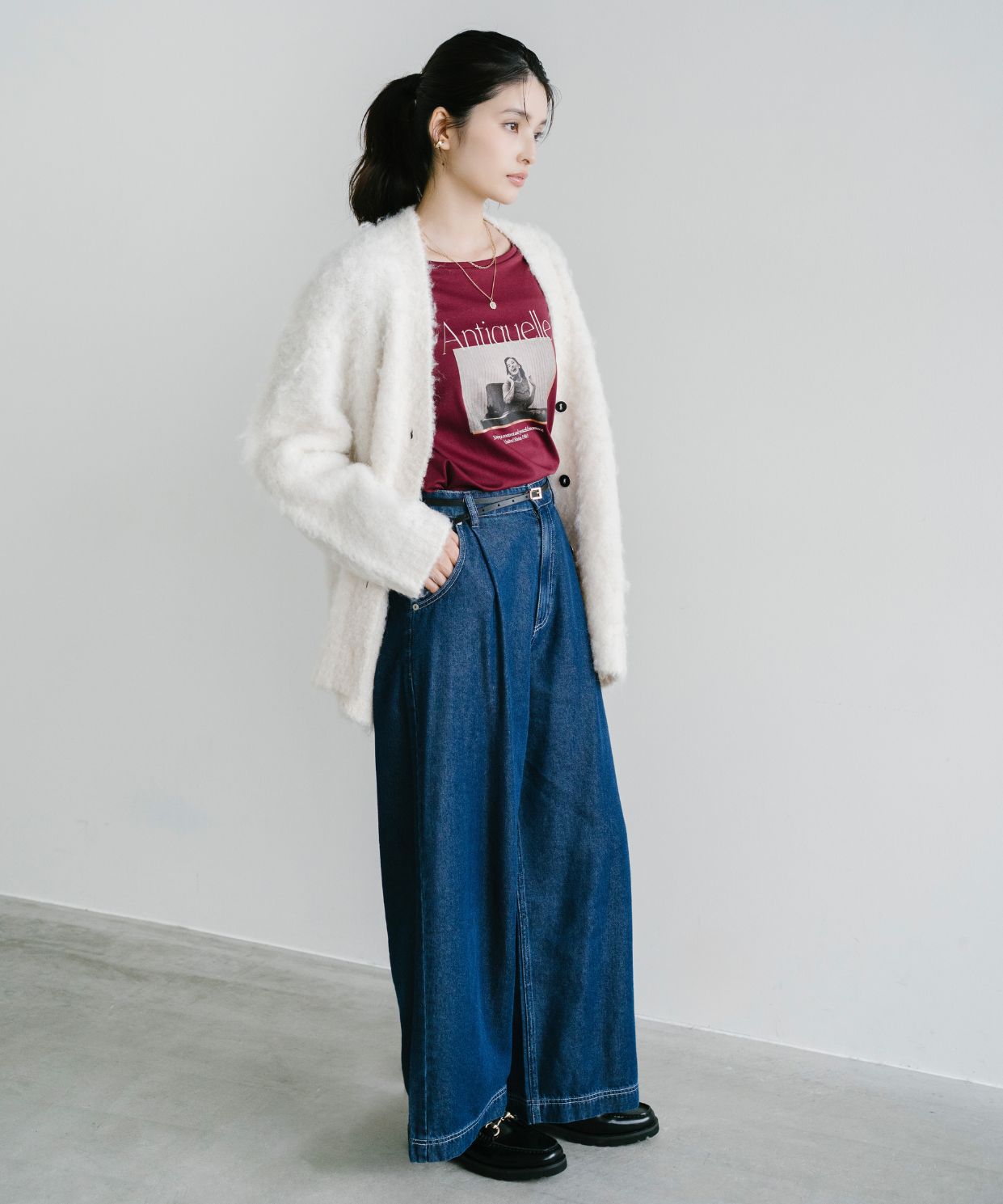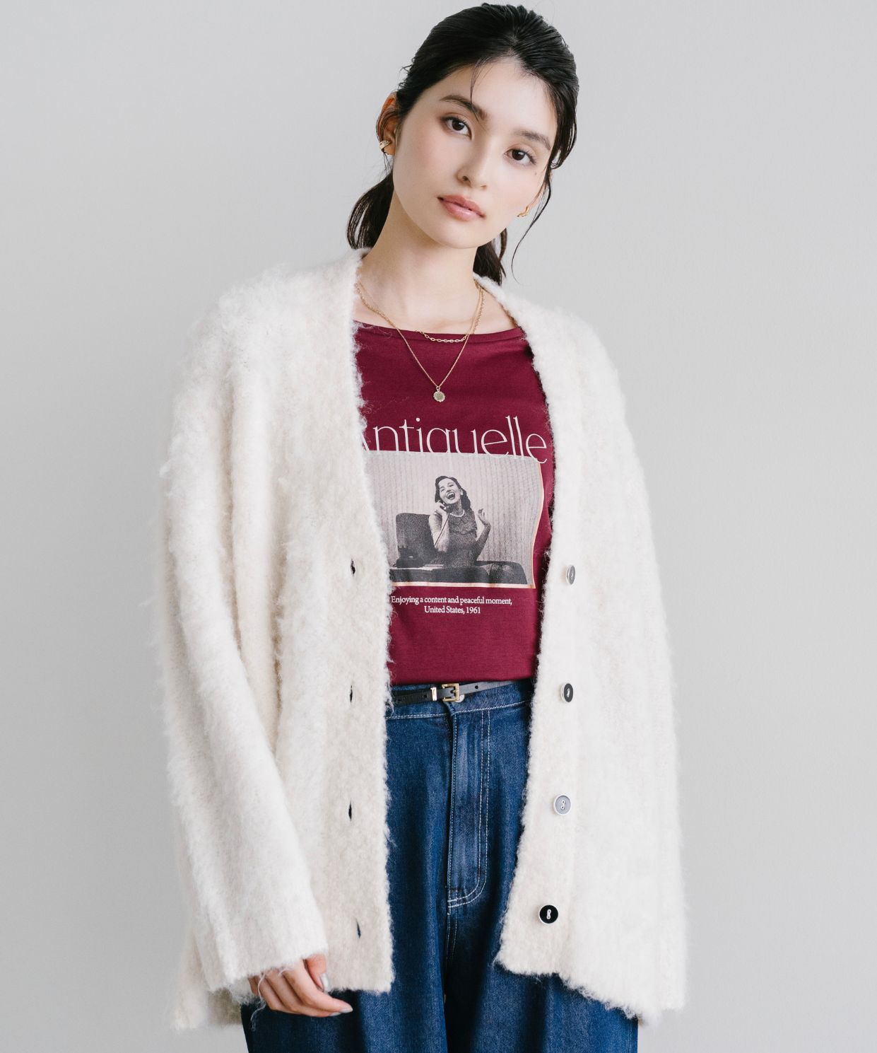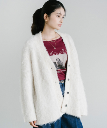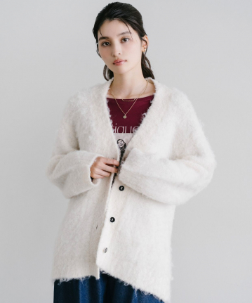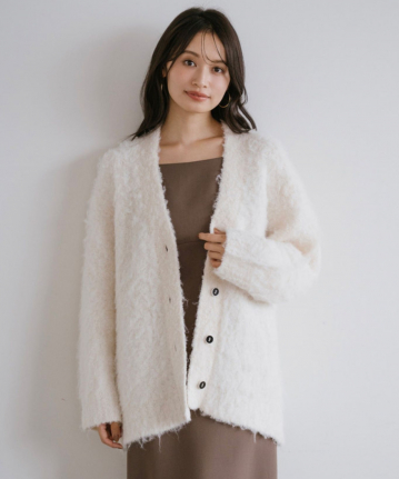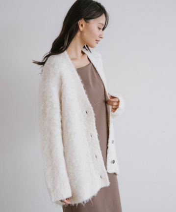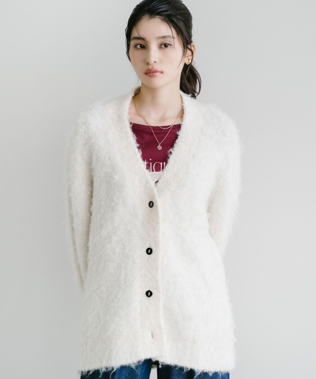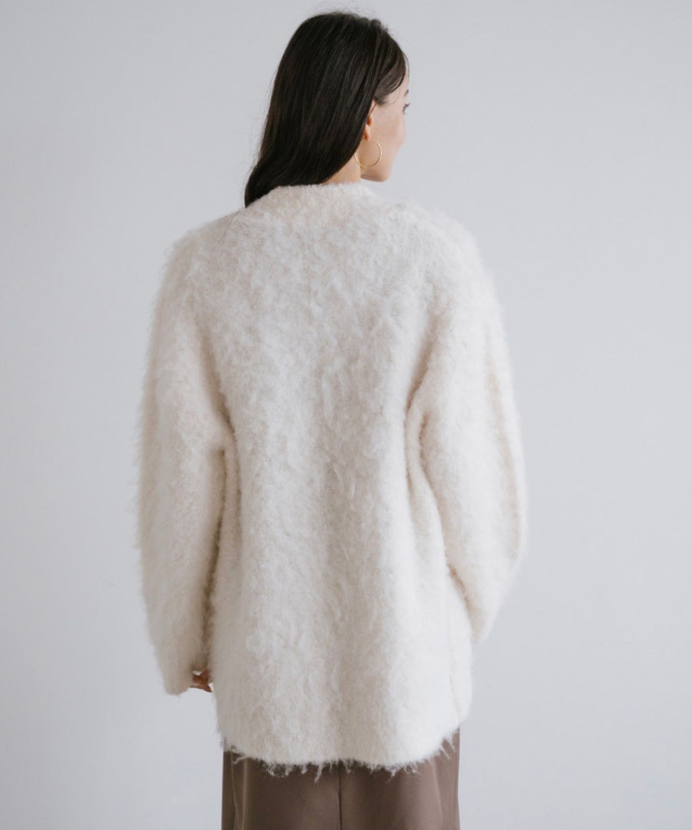 ・編み立てた後に起毛させた、ふんわり柔らかなシャギー素材が魅力のニットカーディガンです。
