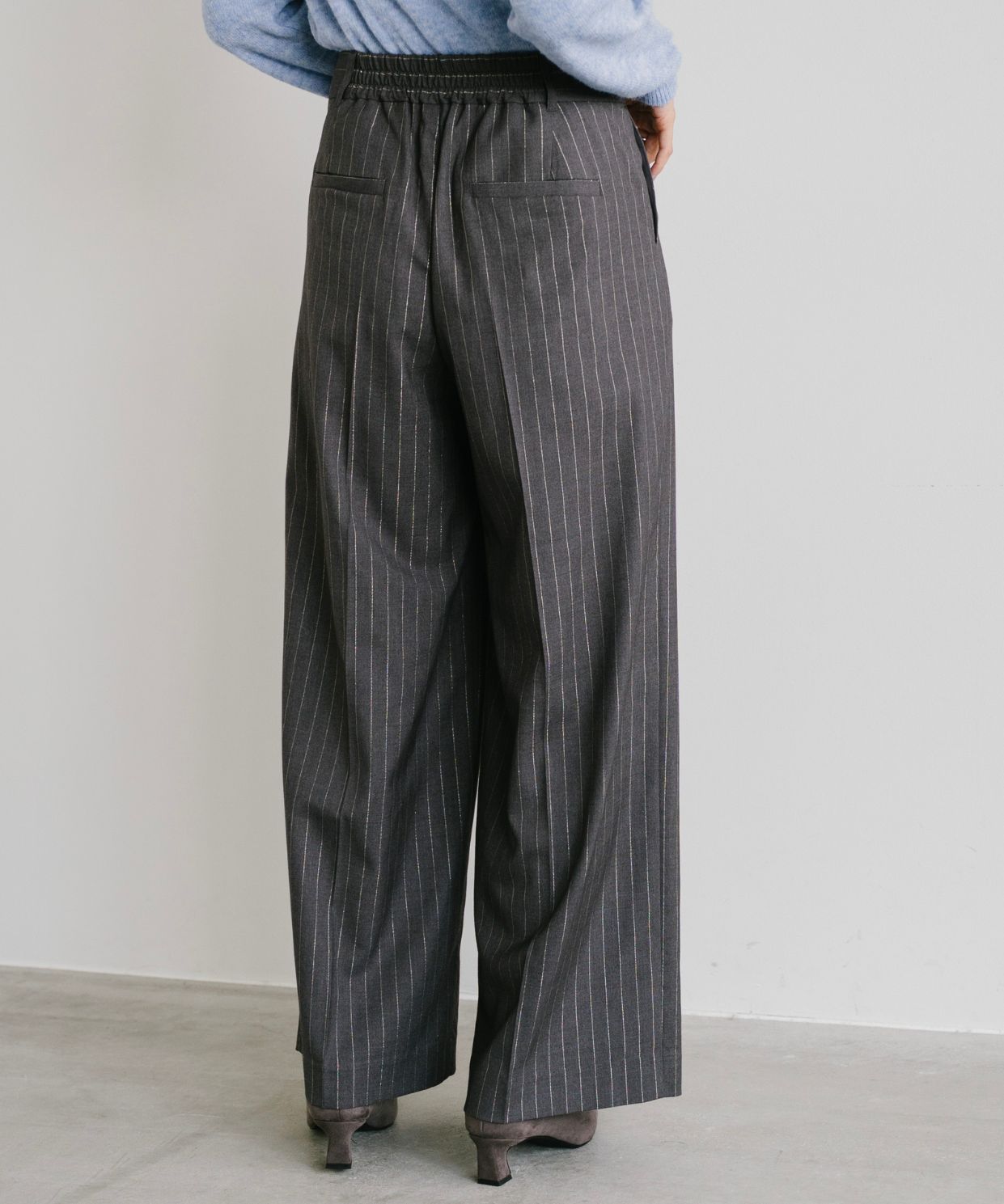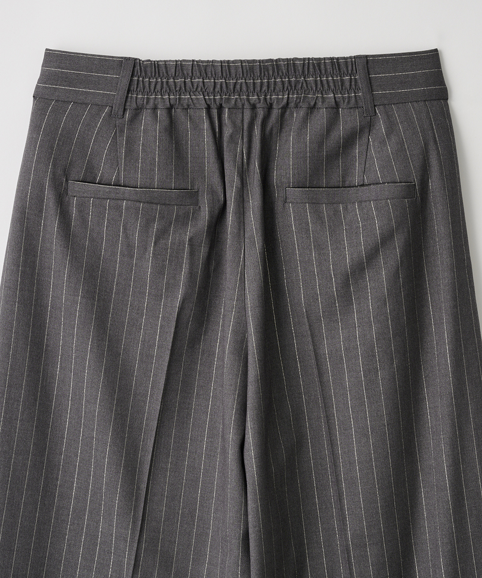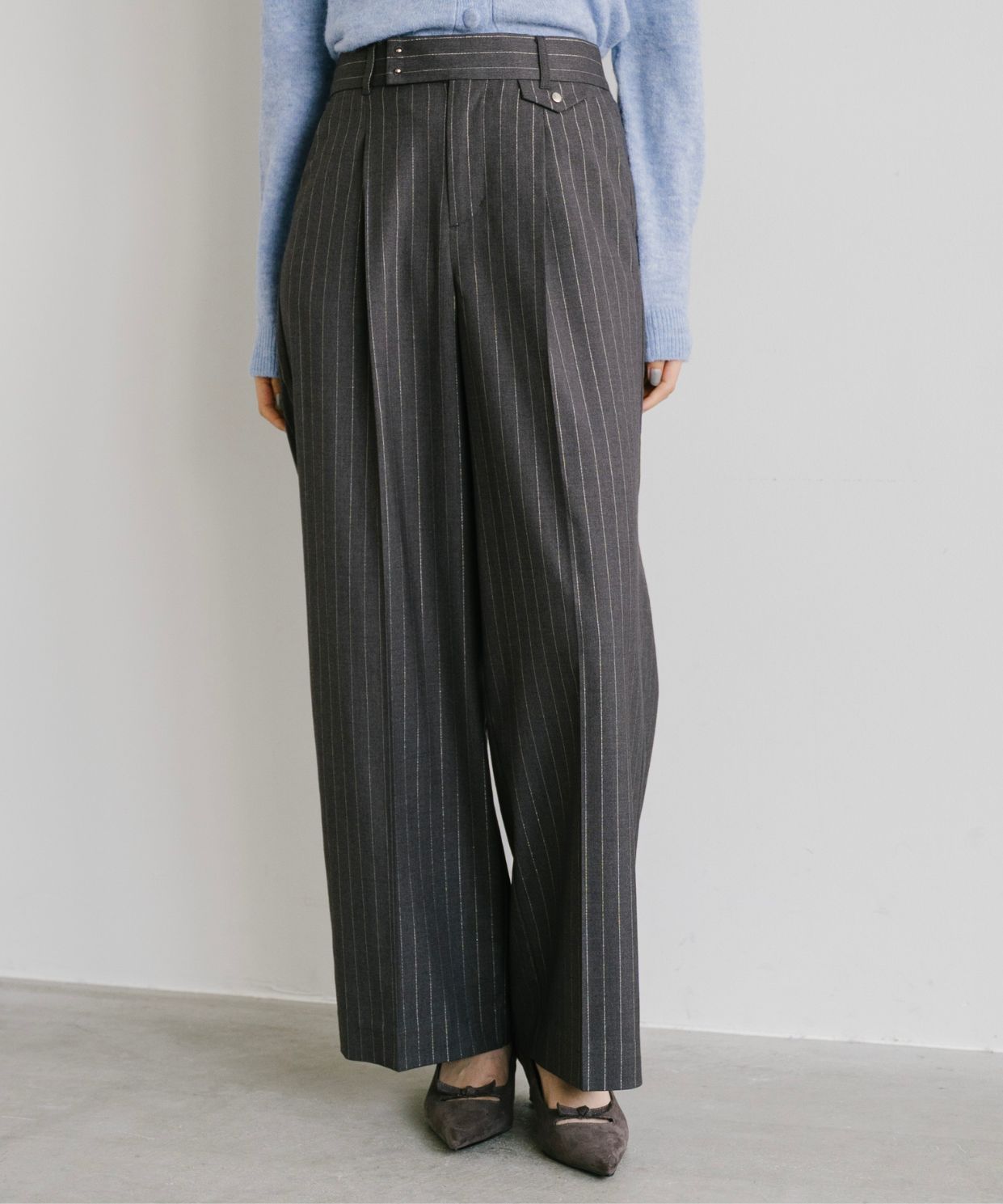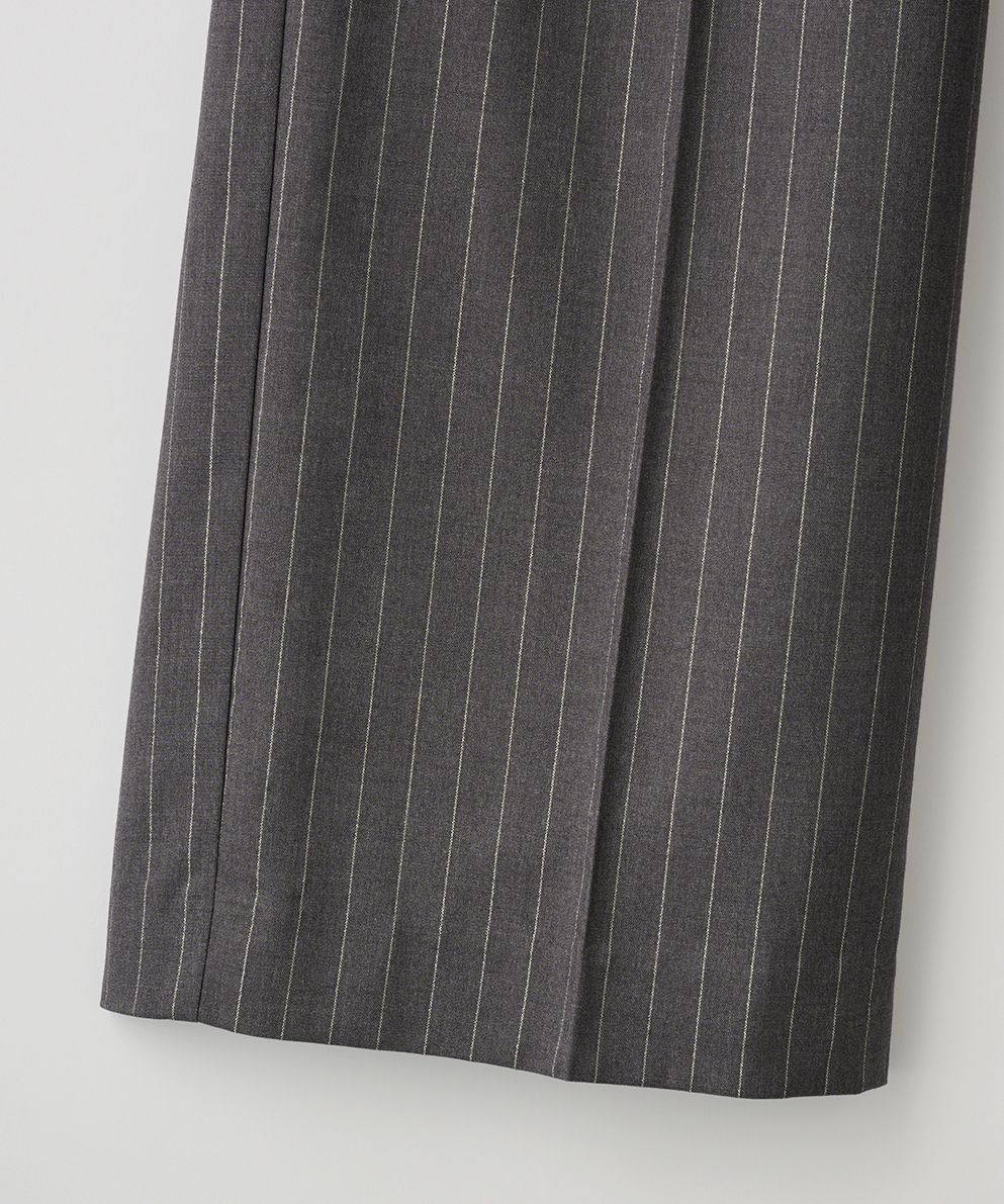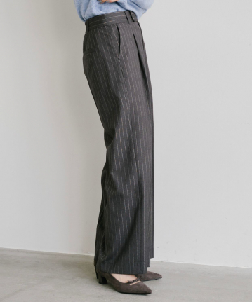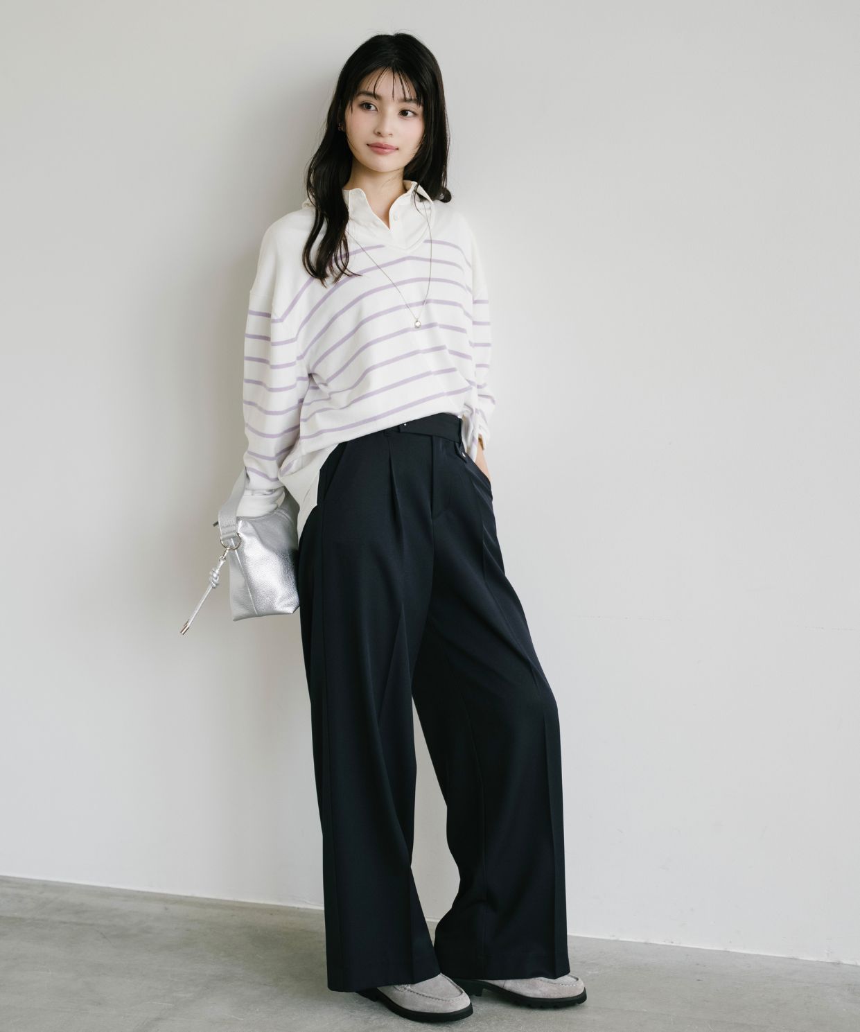・色々なコーディネートに合わせやすい、万能なワイドスラックスです。アイボリー、ネイビーは無地、グレーストライプのみストライプの展開になっています。