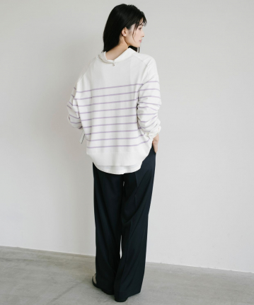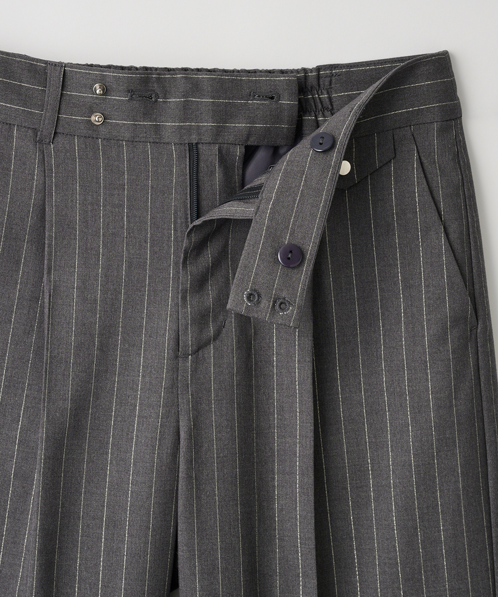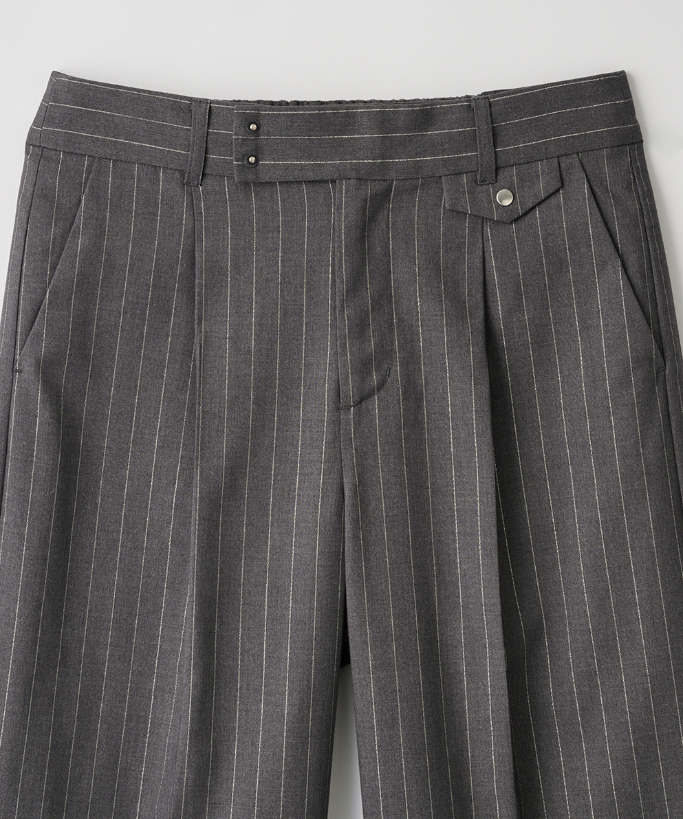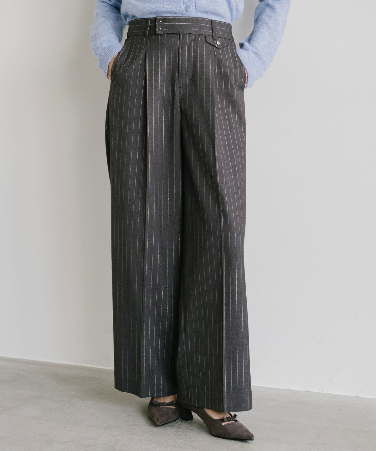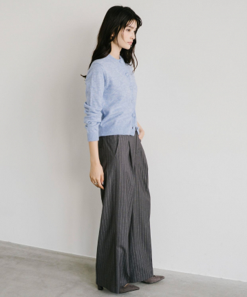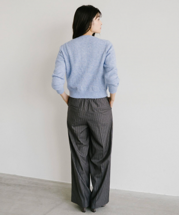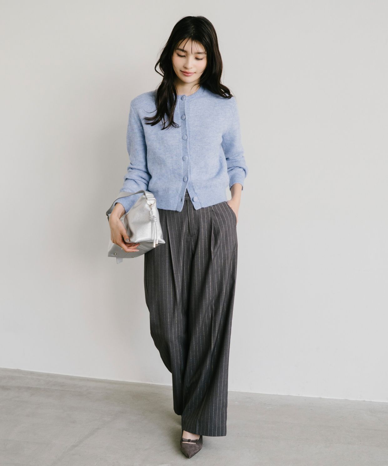 ・色々なコーディネートに合わせやすい、万能なワイドスラックスです。アイボリー、ネイビーは無地、グレーストライプのみストライプの展開になっています。