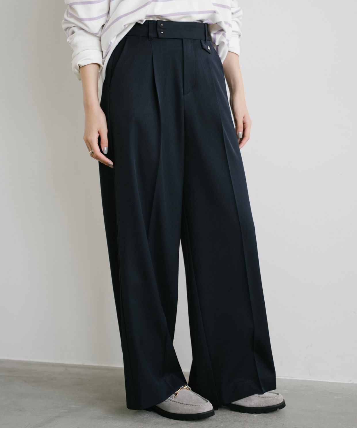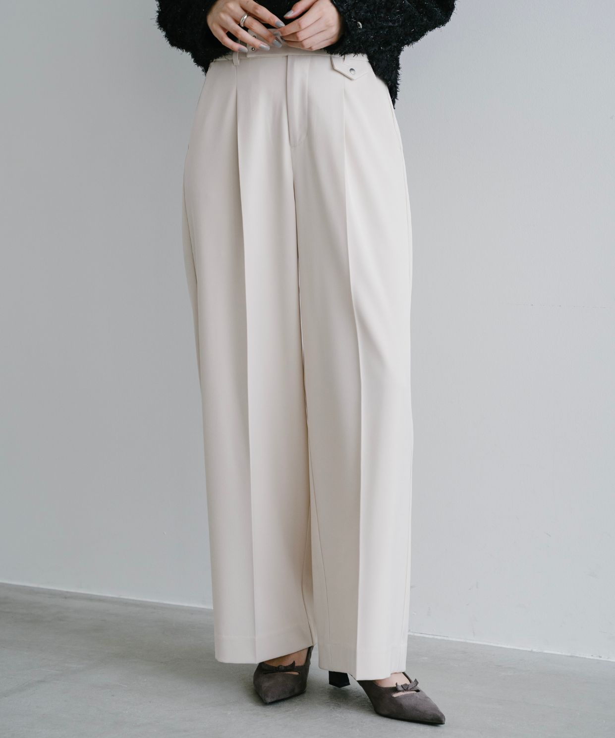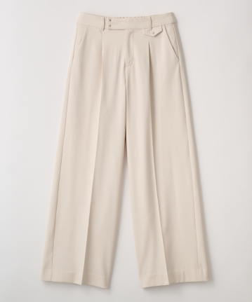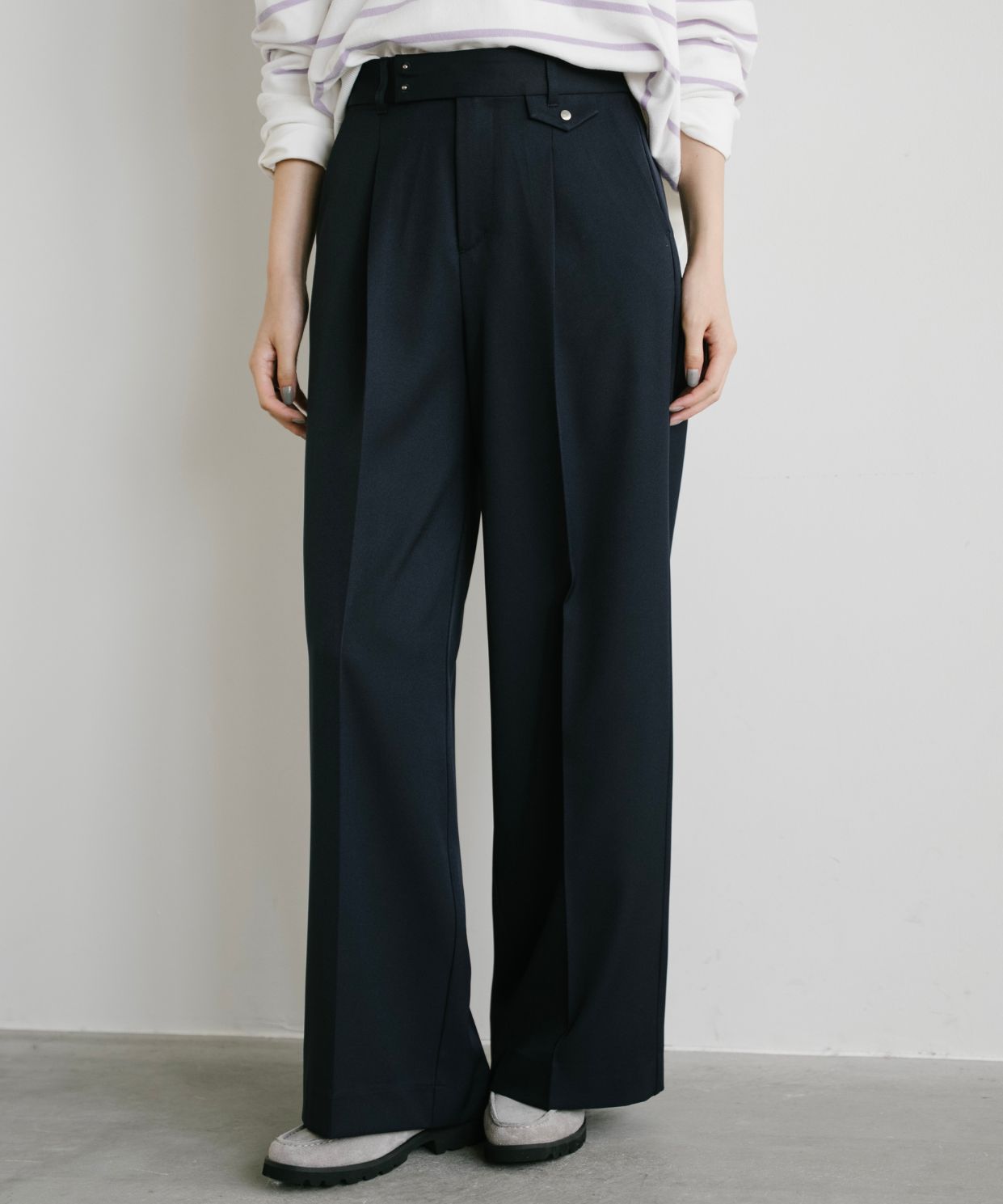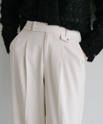 ・タックから繋がるセンタープレスで脚長に見えるようなシルエットになっています。