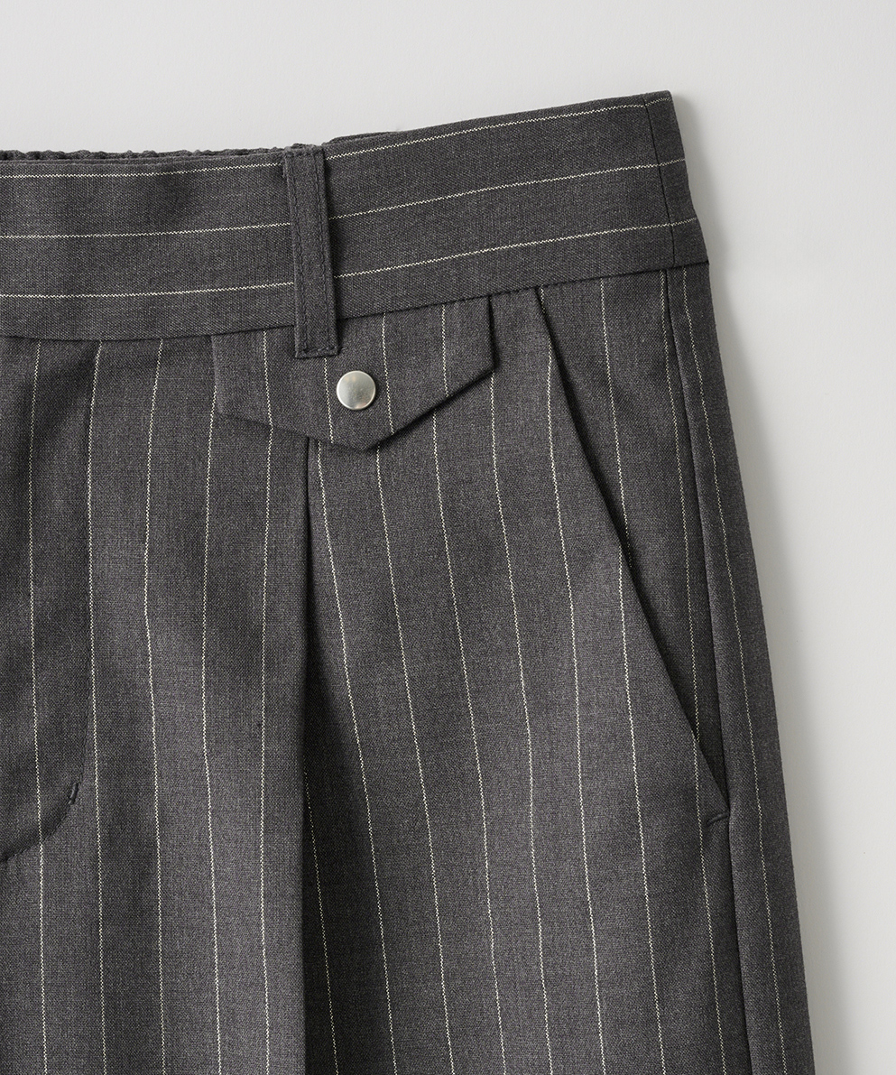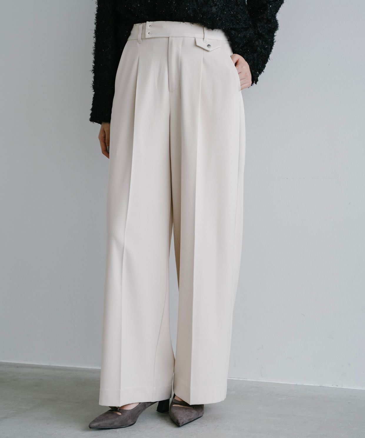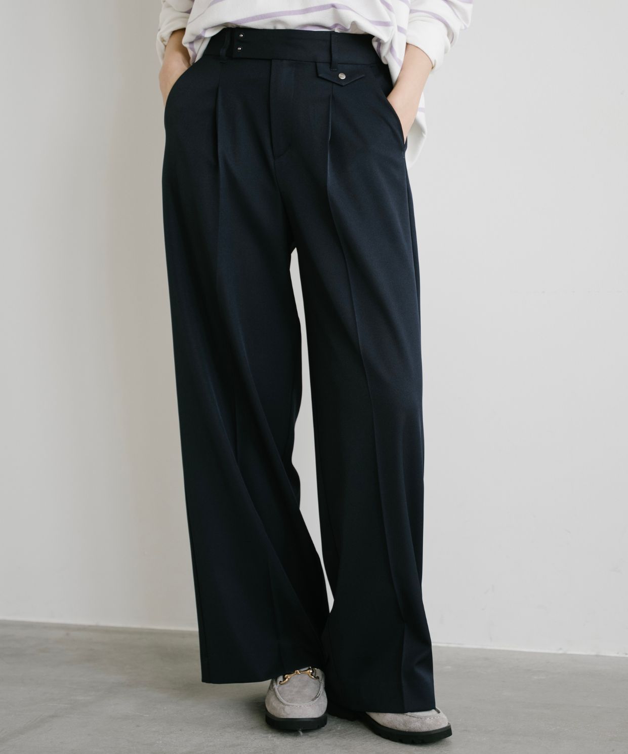 ・タックから繋がるセンタープレスで脚長に見えるようなシルエットになっています。